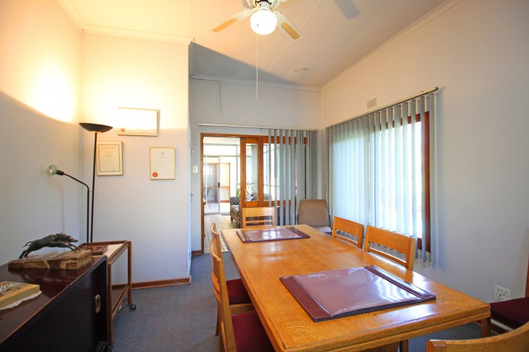 Separate male and female restrooms plus a shower facility. Fully equipped kitchen. Receptions open onto a covered patio leading to pool and garden-ideal for informal meetings or staff gatherings under the trees. Five fully functional offices- one opening to an enclosed courtyard. Secure parking for + - 12 cars. Domestic quarters. Currently used as offices. Zoned res 1.