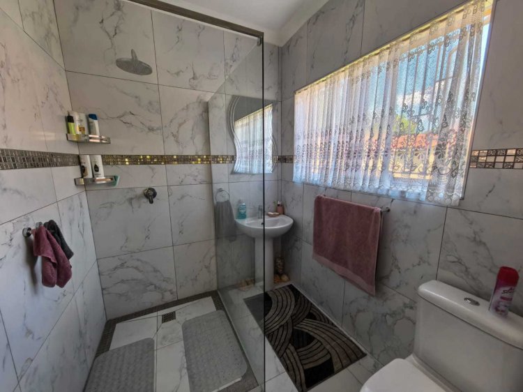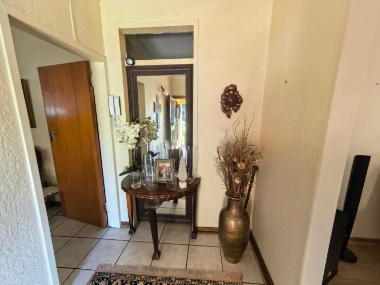 Highlights include: - 4 spacious bedrooms - 4 bathrooms (Main En-Suite, 2 guest bathrooms, and one located in the entertainment zone) - Open-plan lounge and dining area complete with a cosy fireplace - Well-fitted kitchen equipped with a gas stove - Entertainment area featuring a built-in braai - Two secure lock-up garages plus a carport - Two water tanks with a pressure pump, complemented by a water purification system for both indoor and outdoor use - Energy-efficient solar geyser