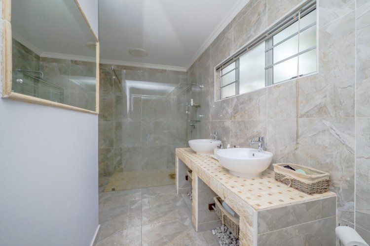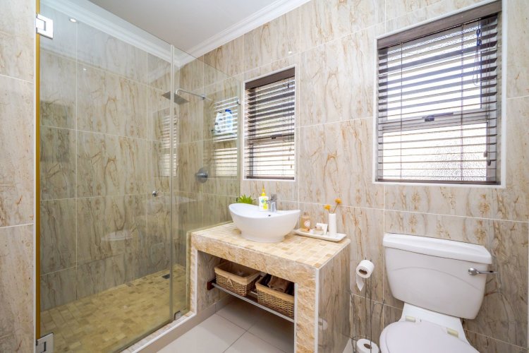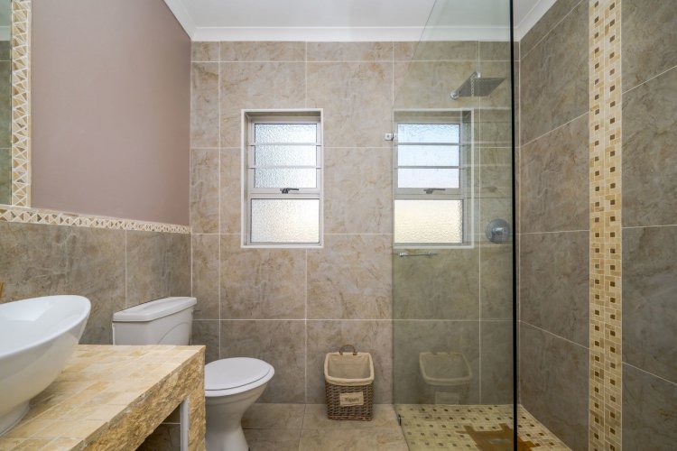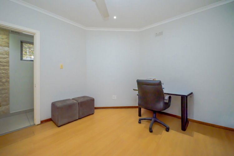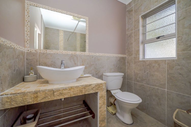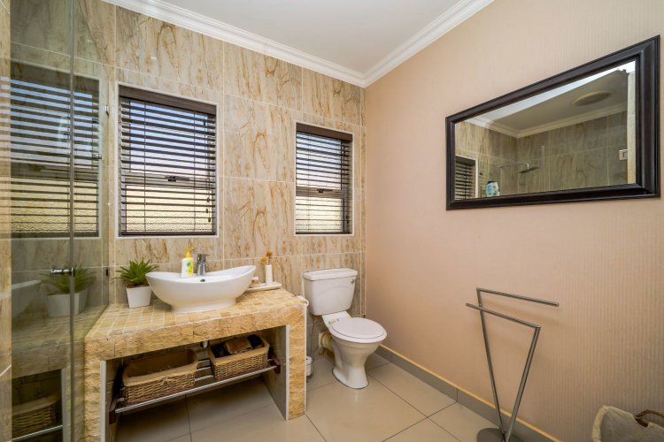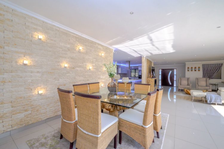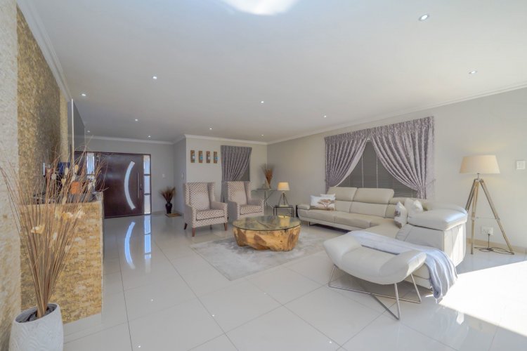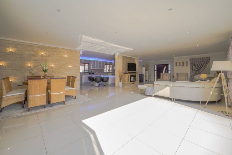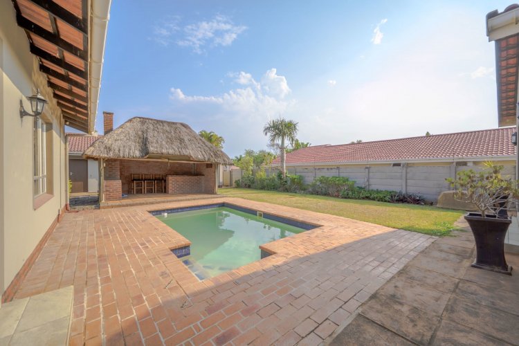 Outdoor entertainment is a dream with a covered lapa, built-in braai, and bar area overlooking the pool, creating the ultimate space for family gatherings and hosting guests. A domestic room with bathroom is also included.