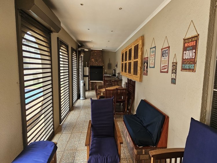 This home features a well sized lounge, dining room, study and kitchen with a laundry room. The kitchen boasts ample cupboard space, eye-level oven, scullery area and enough space for your appliances. There is a big entertainment room with a built in braai and doors leading to the garden with a sparkling pool for your enjoyment during the hot days.