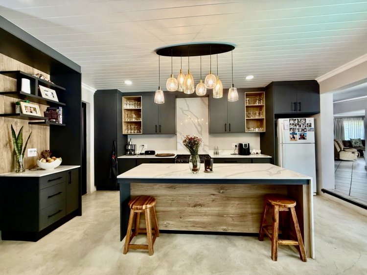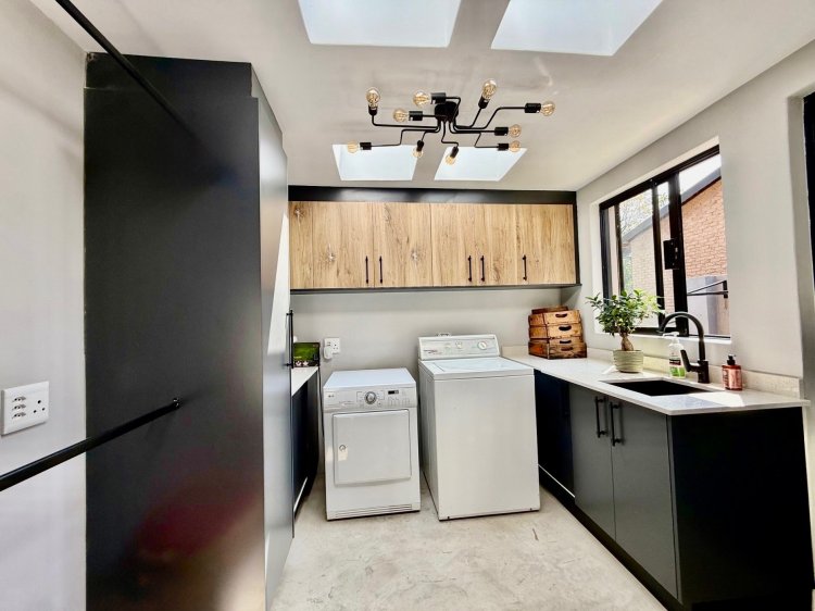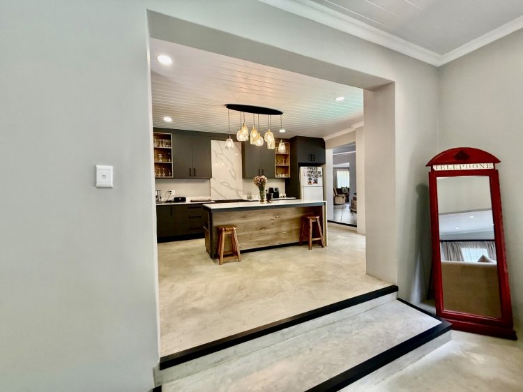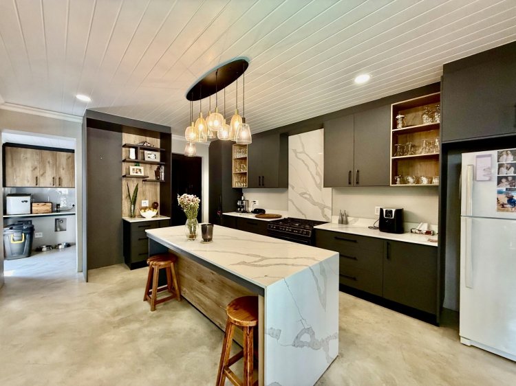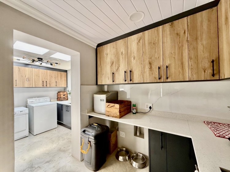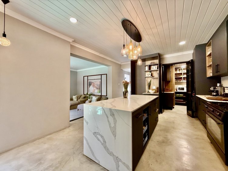At the heart of the home lies a beautifully designed, expansive kitchen, a true entertainer's dream, featuring sleek finishes, a separate scullery, and a fully equipped laundry area with ample cupboard space.
