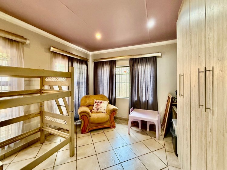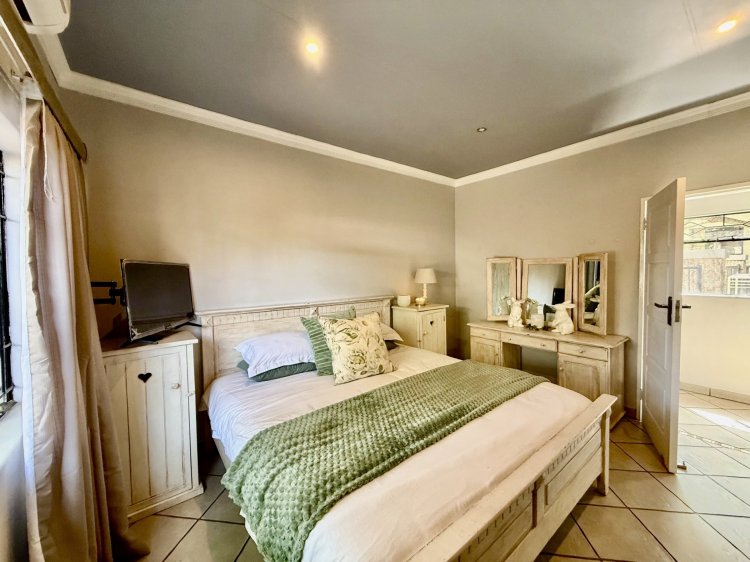 Security is a top priority, with a comprehensive Amex alarm system protecting the entire property. The garden is fully pet-friendly and supported by a borehole, JoJo tank, and pressure pump, ensuring consistent water supply and lush surroundings all year round.