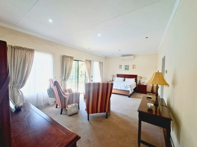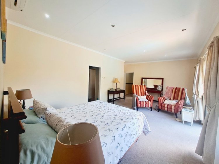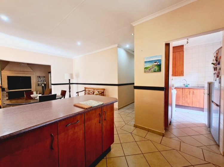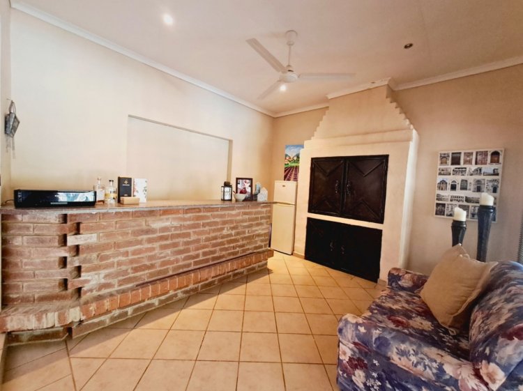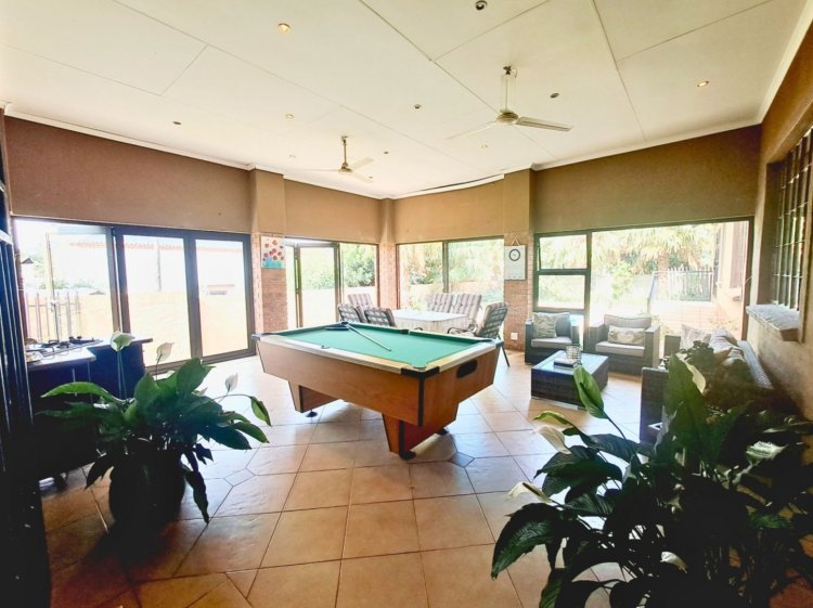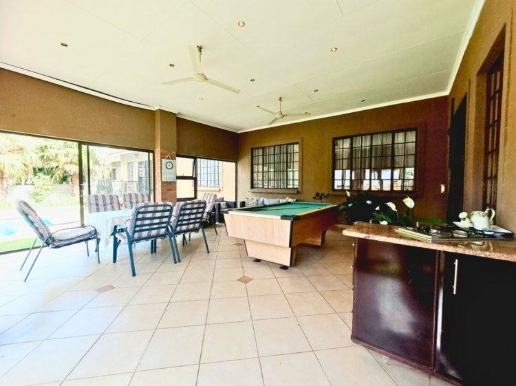The heart of this home is its expansive open-plan living space. The kitchen—featuring a spacious scullery and a practical breakfast counter—flows effortlessly into the dining area and the braai room. Here, you’ll find a cosy wood-storage nook and a built-in bar, setting the tone for unforgettable gatherings. Aluminium folding and sliding doors open the entire space to a large enclosed entertainment patio with a second built-in braai, creating a seamless indoor-outdoor lifestyle your family will love.