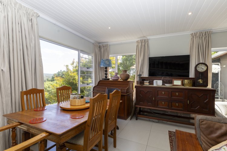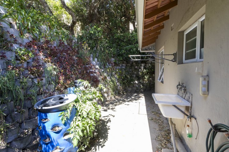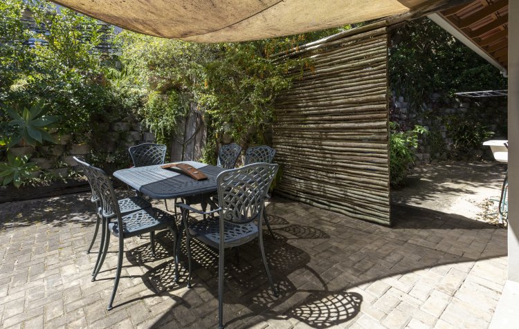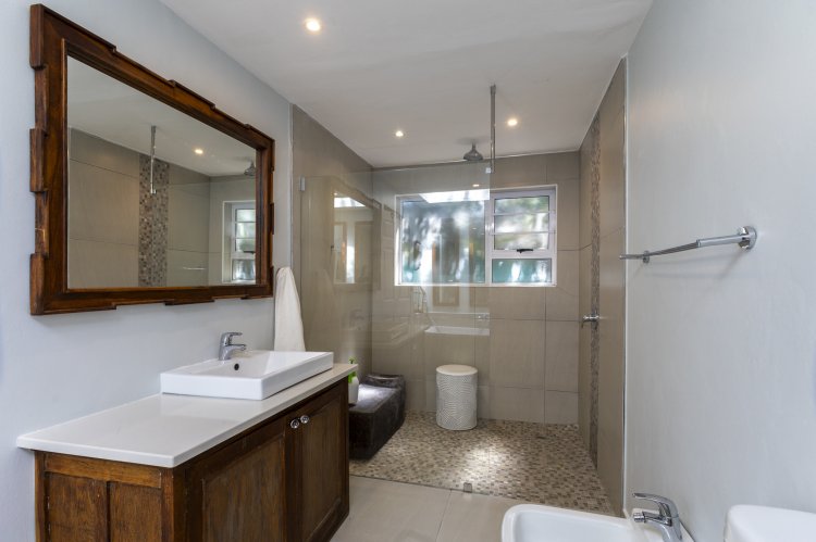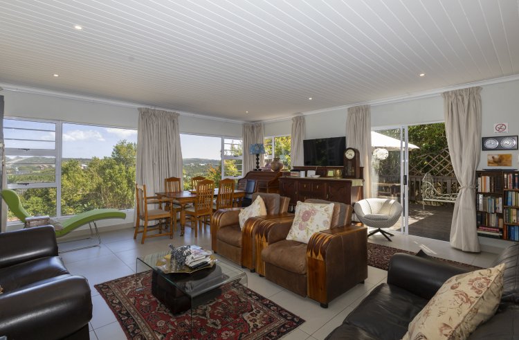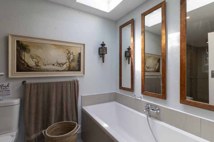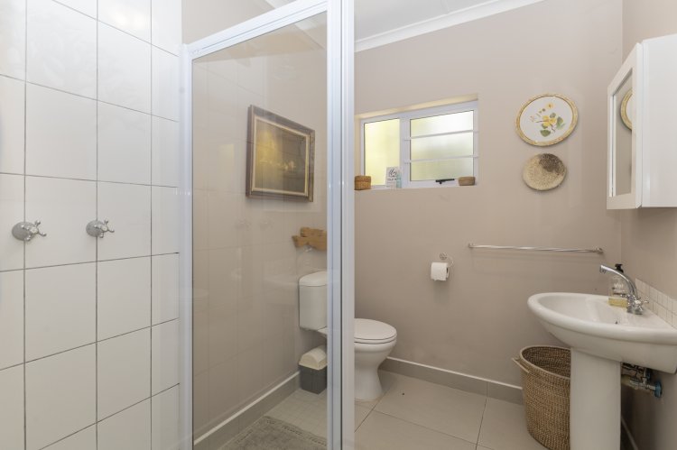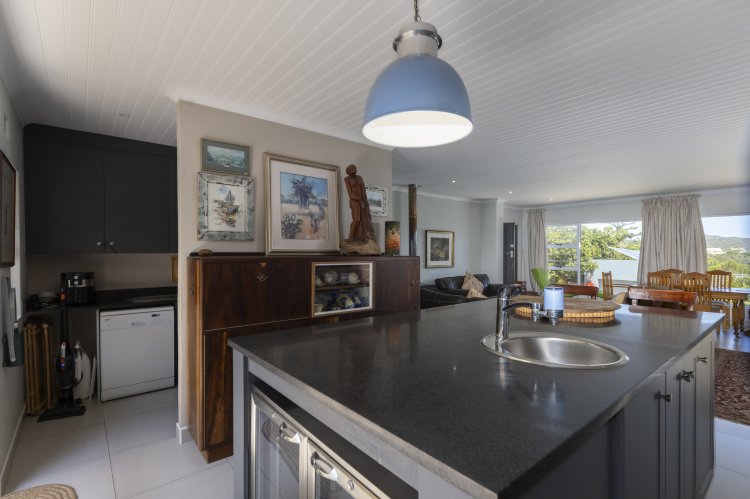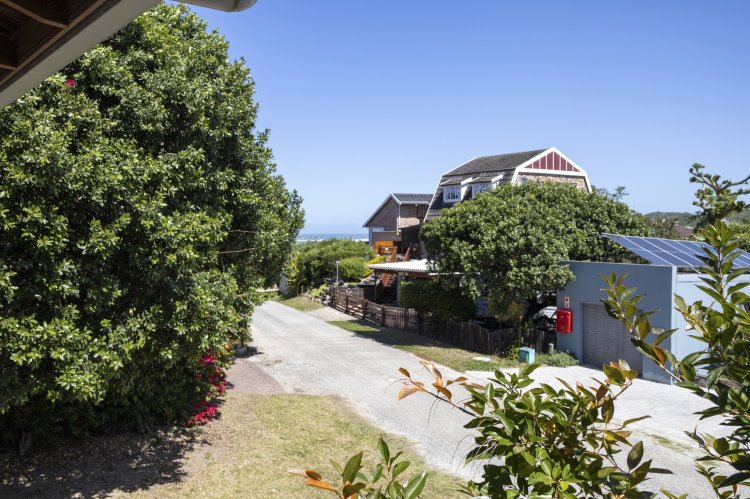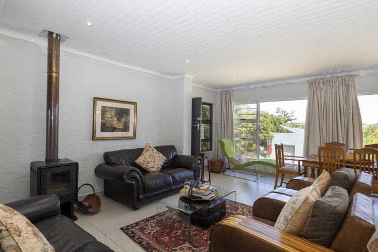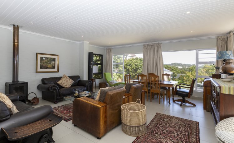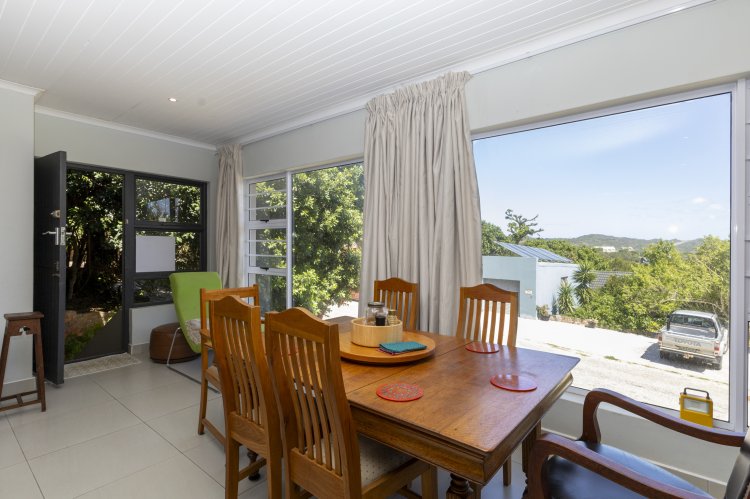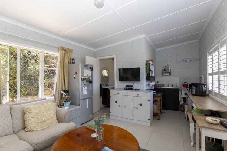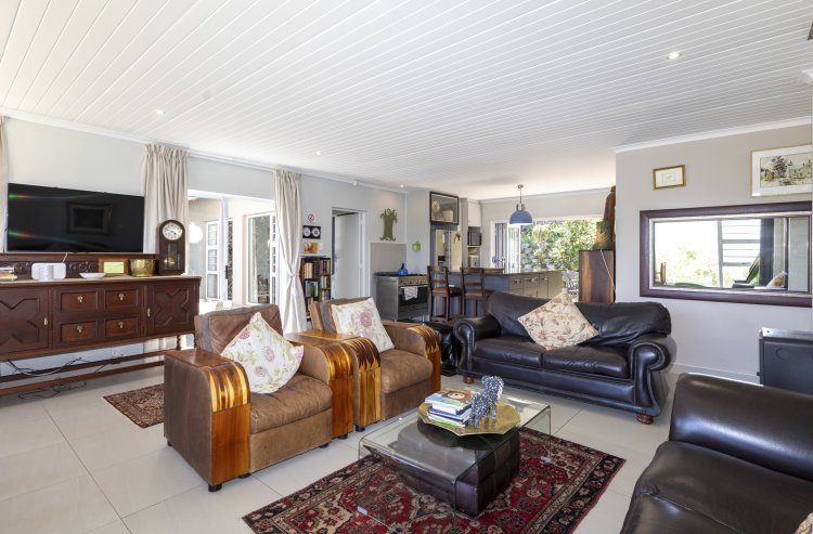 Discover this beautifully renovated home, just a stone’s throw from the beach in Kleinemonde. At the top of the stairs you are welcomed into a generous open-plan lounge, dining area, and kitchen. Abundant natural light floods the interiors through aluminium-framed windows, while a cozy fireplace adds both warmth and atmosphere on cooler evenings. The modern kitchen is a true centerpiece, boasting a sizeable island, modern appliances, and cleverly integrated storage. A discreet scullery with laundry facilities is positioned just off the kitchen. Aluminium stackable doors open effortlessly to a sheltered dining patio, creating a relaxed connection between indoor comfort and outdoor entertaining. From the lounge, double doors reveal a secluded wooden deck. This is an idyllic space to unwind and relax, with a glimpse of the sea from its corner. The luxurious master suite overlooks the deck and features a full en-suite bathroom. On the other side of the lounge there are two additional bedrooms, crafted with the same attention to detail, which share a beautifully appointed bathroom. On the ground level, a spacious double garage has been partly converted into a games room or additional accommodation. Secure parking for one car is available behind a garage door while the other side has an aluminium door and windows. Completing this exceptional property is a charming one-bedroom garden cottage with its own lounge, kitchenette, and bathroom. It is tucked away along a landscaped path, offering a private retreat for guests or versatile extra space.