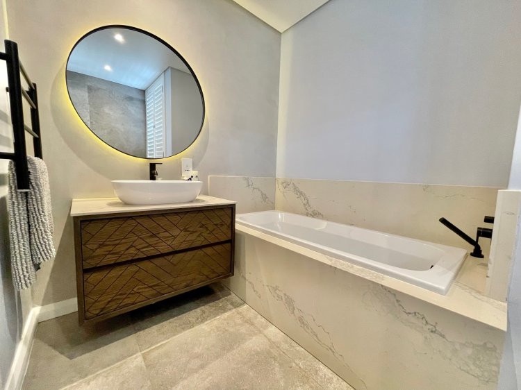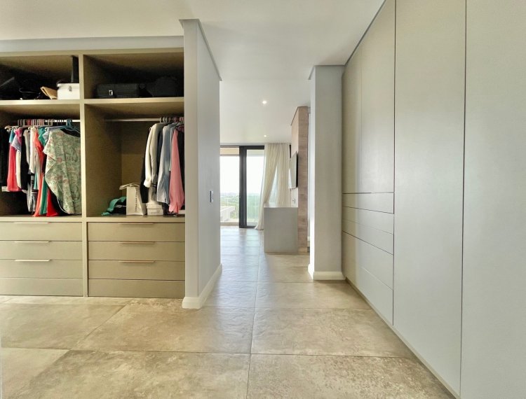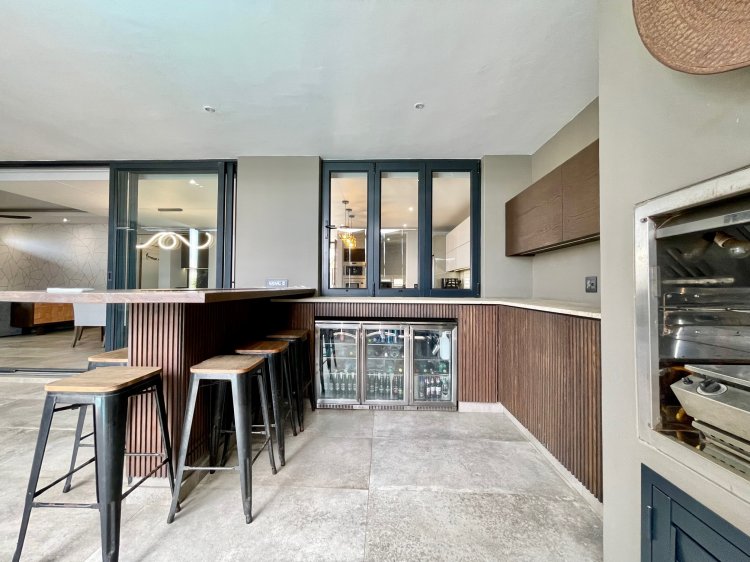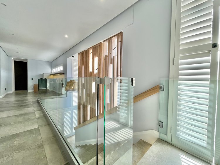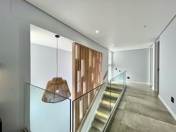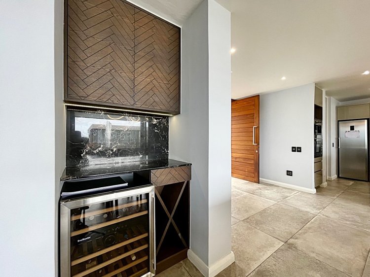 The showpiece of this level is the state-of-the-art chef’s kitchen, featuring top-of-the-range integrated appliances, a striking waterfall-edge island, and exceptional storage. A separate scullery and laundry lead discreetly off the kitchen, ensuring the main living area remains pristine and elegant. Additional conveniences include a guest cloakroom and a large storeroom.