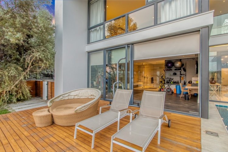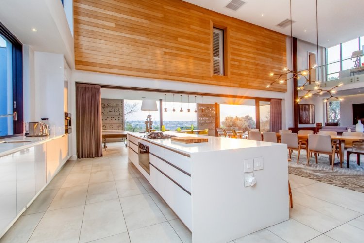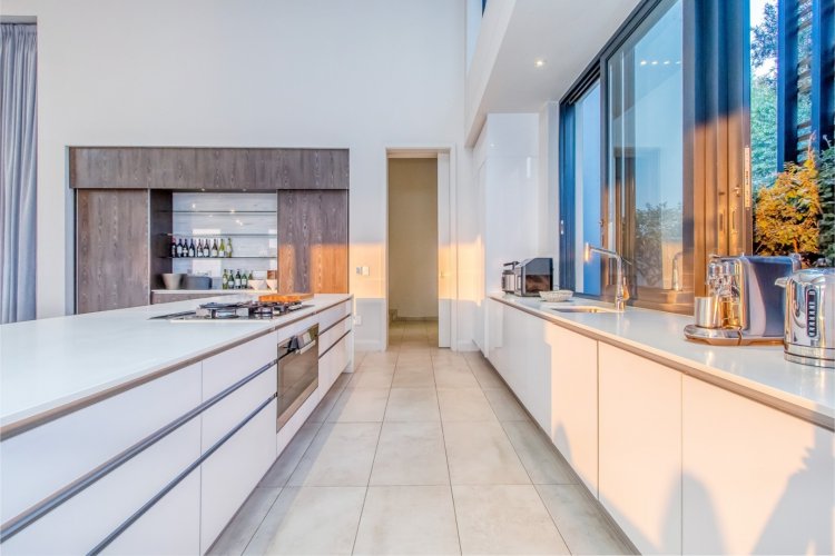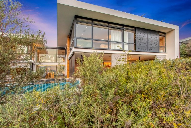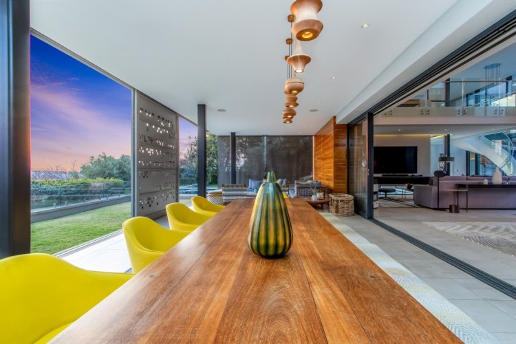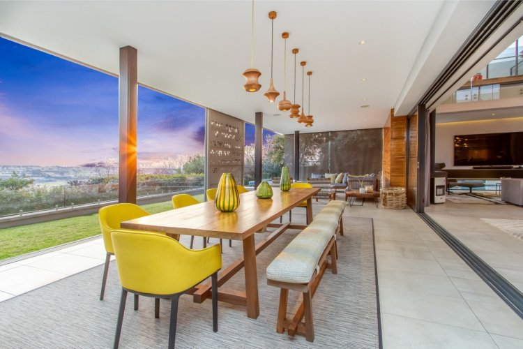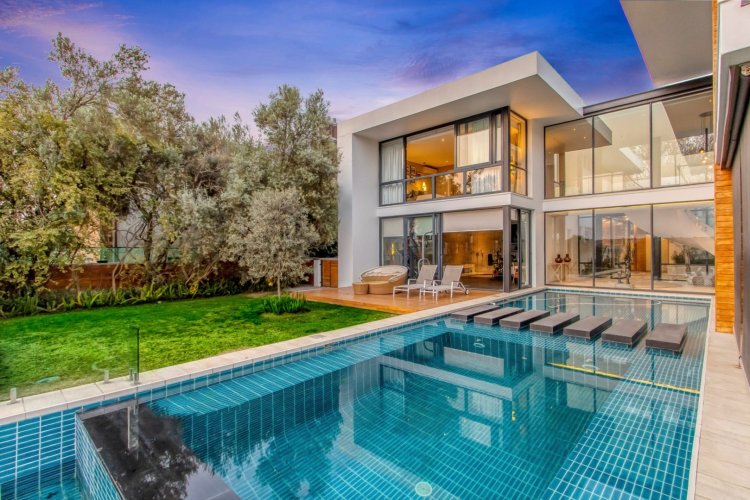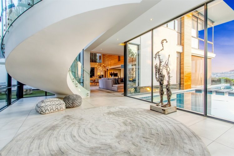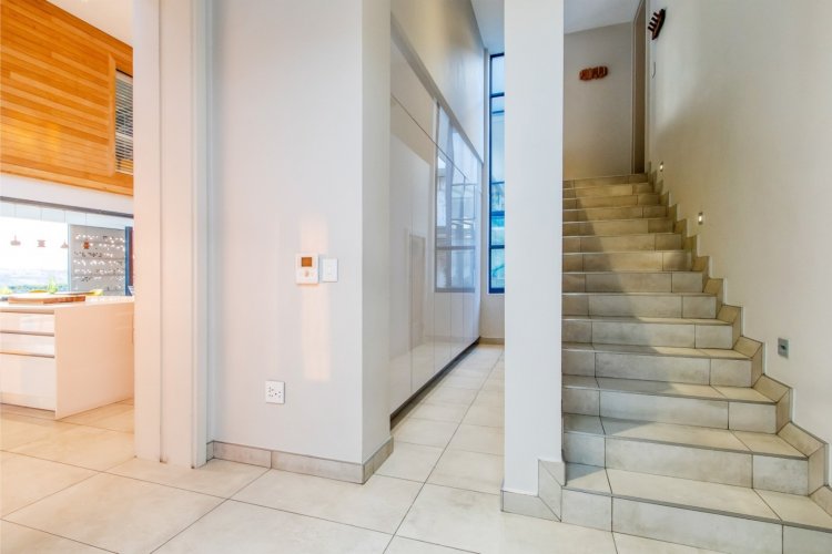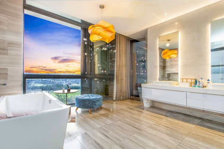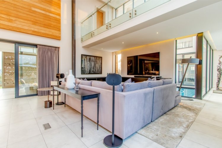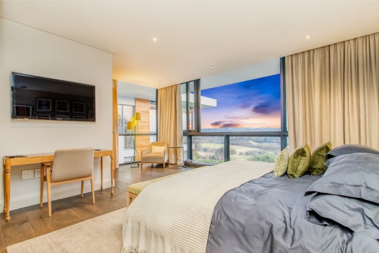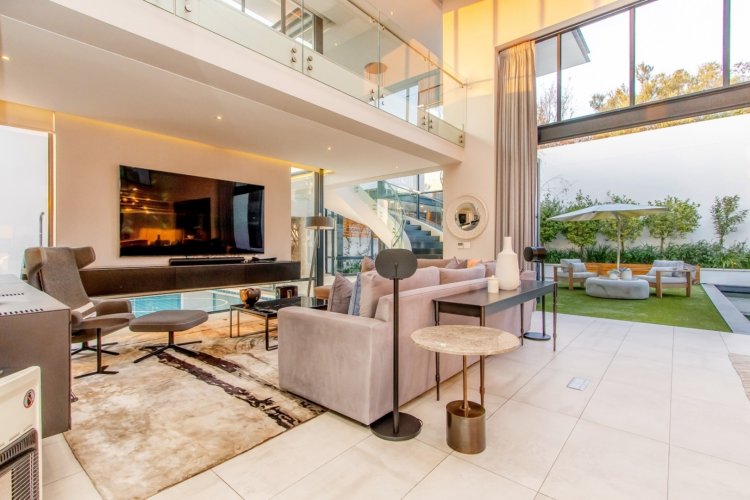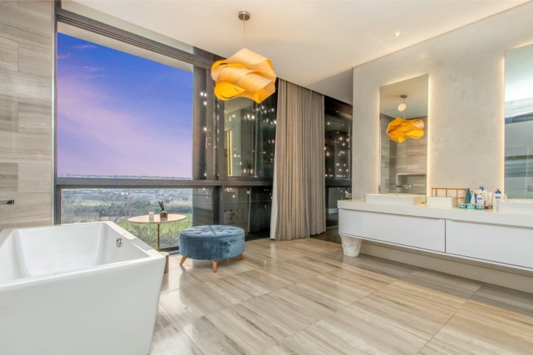 The state-of-the-art kitchen is a culinary enthusiast’s dream—featuring sleek Caesarstone countertops, high-gloss cabinetry, top-of-the-line integrated appliances, a central island with a gas hob, and a separate scullery—perfectly designed to elevate your hosting experience. Indoor and outdoor living merge beautifully, with an internal courtyard featuring a striking water feature, a heated mosaic-tiled pool, and a sun-drenched deck. A private guest suite with an en-suite bathroom and an additional guest cloakroom complete the ground floor. Upstairs, the master retreat is a sanctuary of calm, opening onto a private balcony that showcases sweeping 180-degree views. A designer walk-in dressing room and an indulgent, spa-style bathroom offer the ultimate escape. Two further en-suite bedrooms—each with walk-in wardrobes—provide luxurious accommodation for family and guests alike.