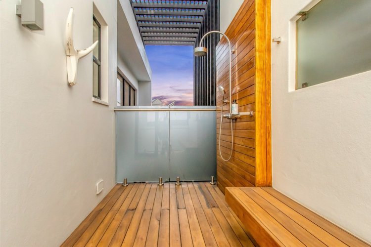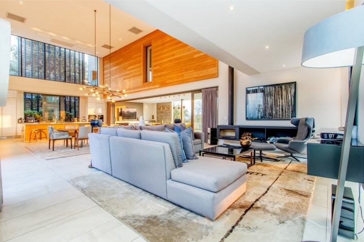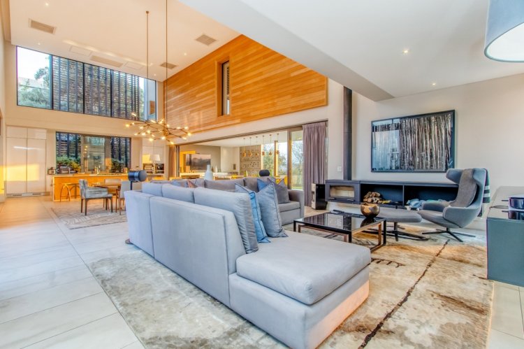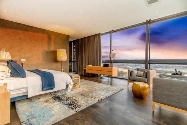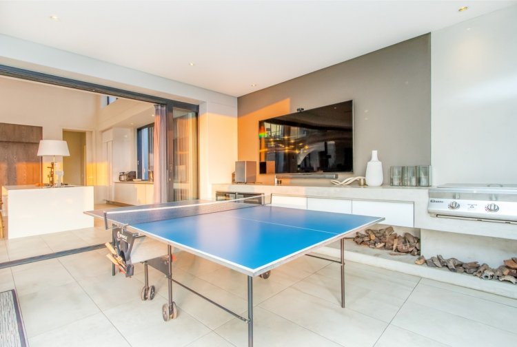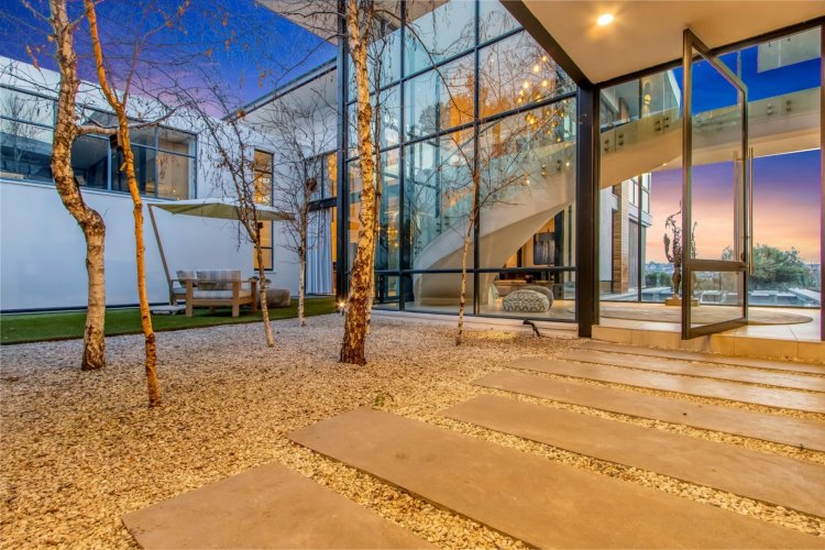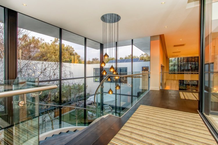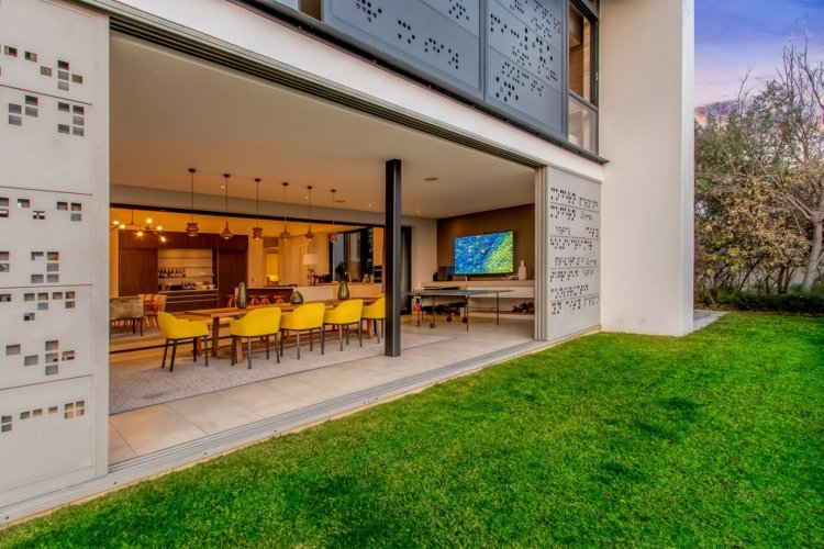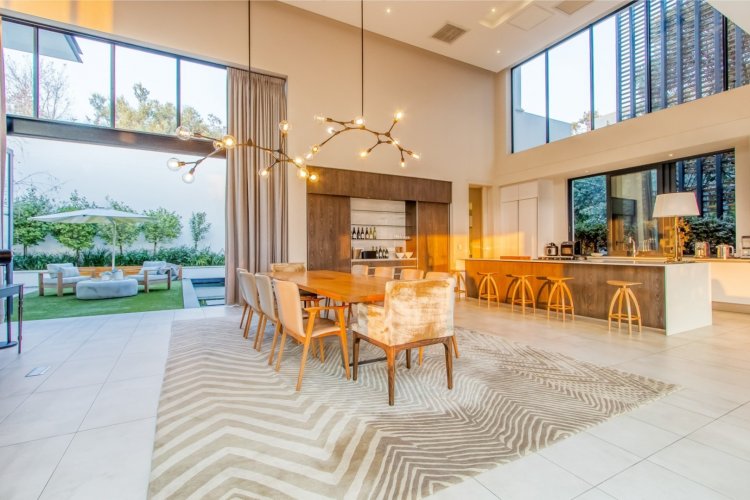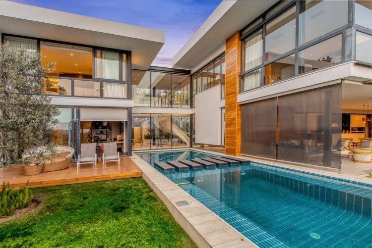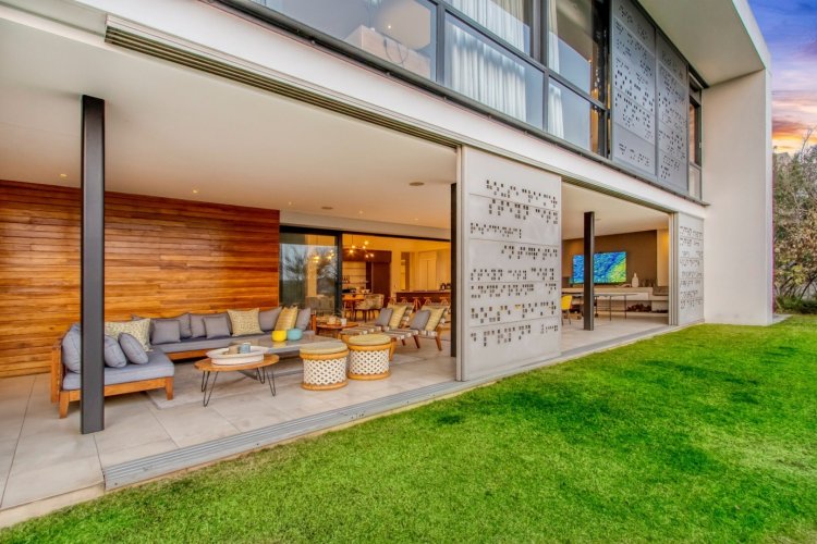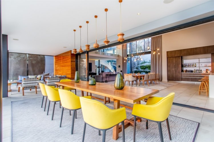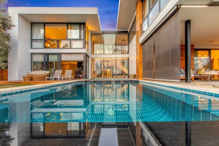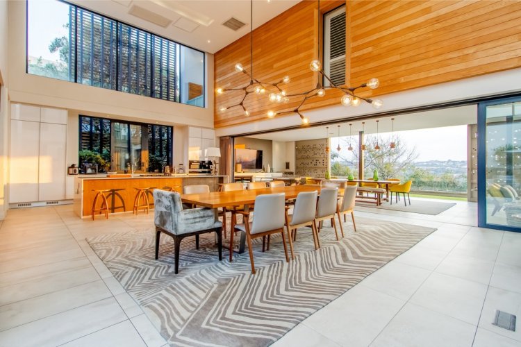 The state-of-the-art kitchen is a culinary enthusiast’s dream—featuring sleek Caesarstone countertops, high-gloss cabinetry, top-of-the-line integrated appliances, a central island with a gas hob, and a separate scullery—perfectly designed to elevate your hosting experience. Indoor and outdoor living merge beautifully, with an internal courtyard featuring a striking water feature, a heated mosaic-tiled pool, and a sun-drenched deck. A private guest suite with an en-suite bathroom and an additional guest cloakroom complete the ground floor. Upstairs, the master retreat is a sanctuary of calm, opening onto a private balcony that showcases sweeping 180-degree views. A designer walk-in dressing room and an indulgent, spa-style bathroom offer the ultimate escape. Two further en-suite bedrooms—each with walk-in wardrobes—provide luxurious accommodation for family and guests alike.