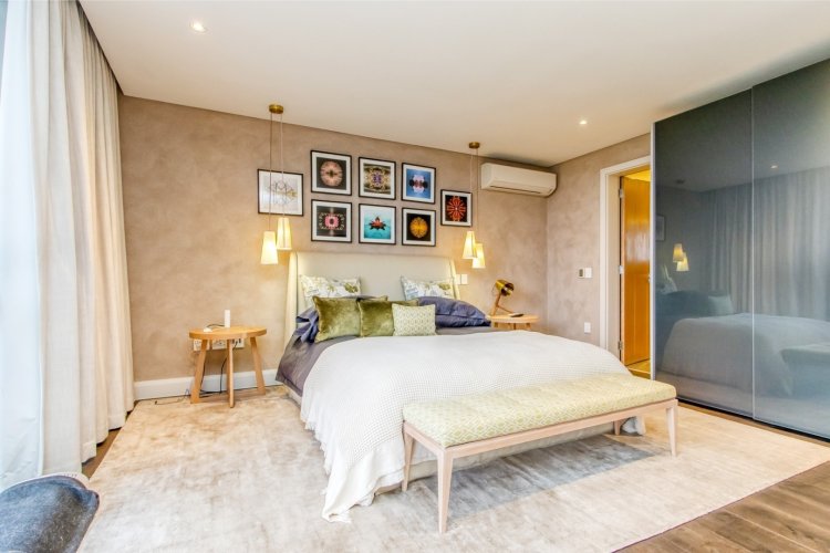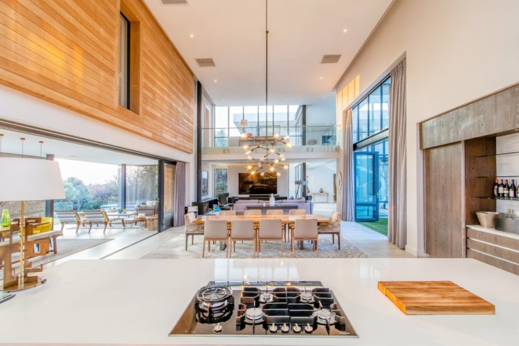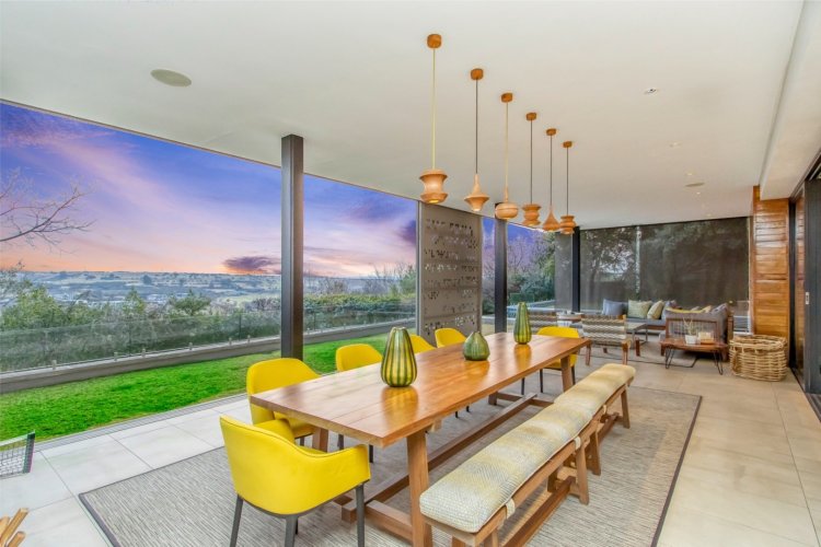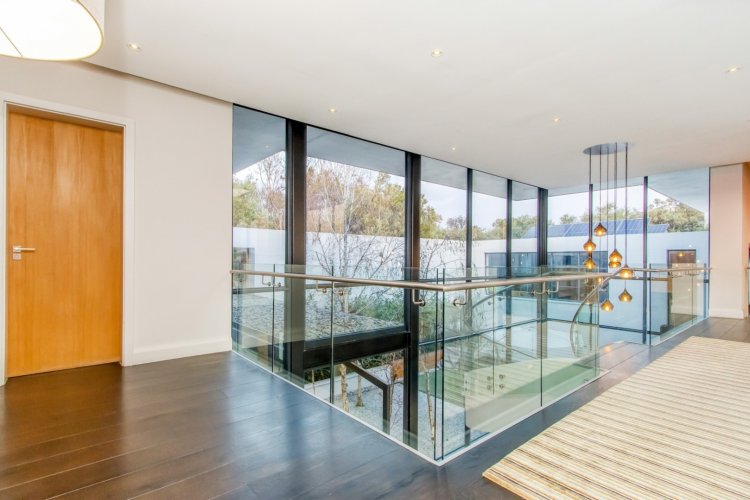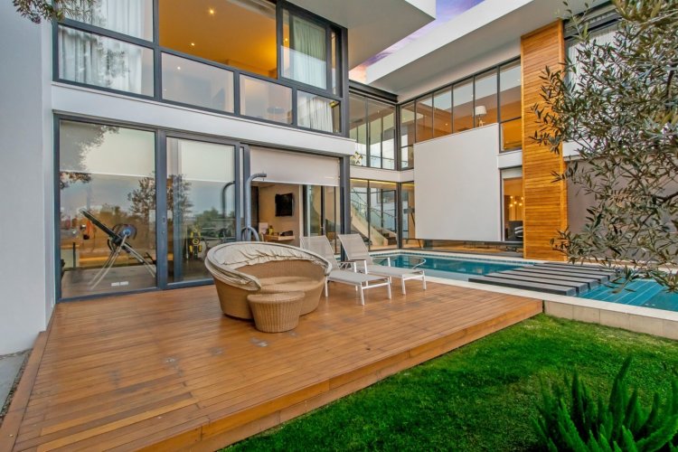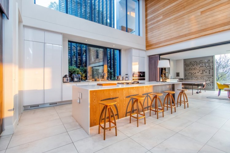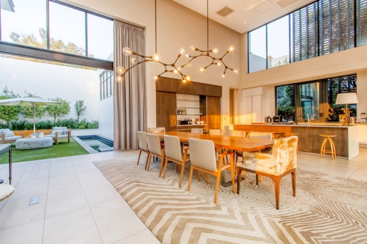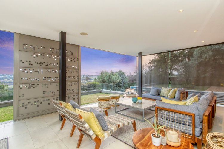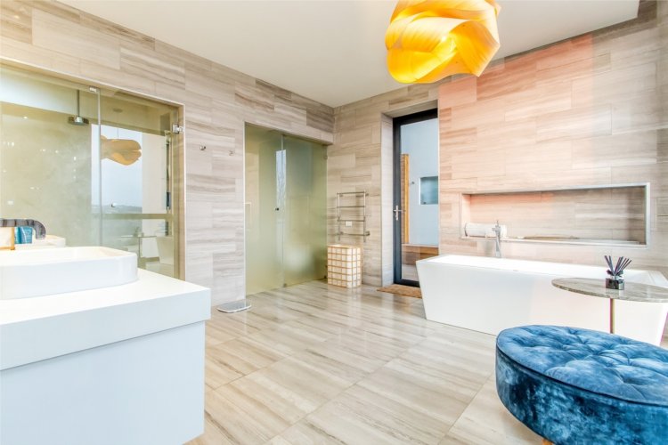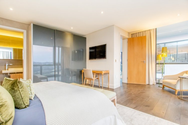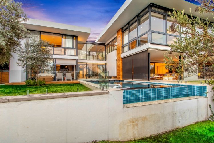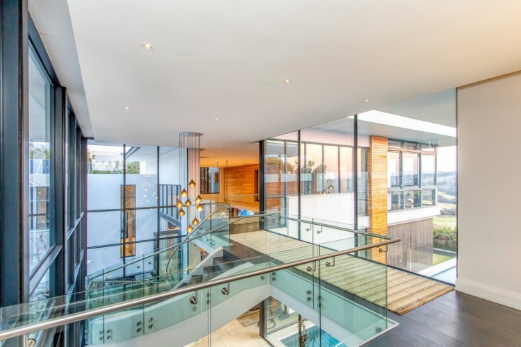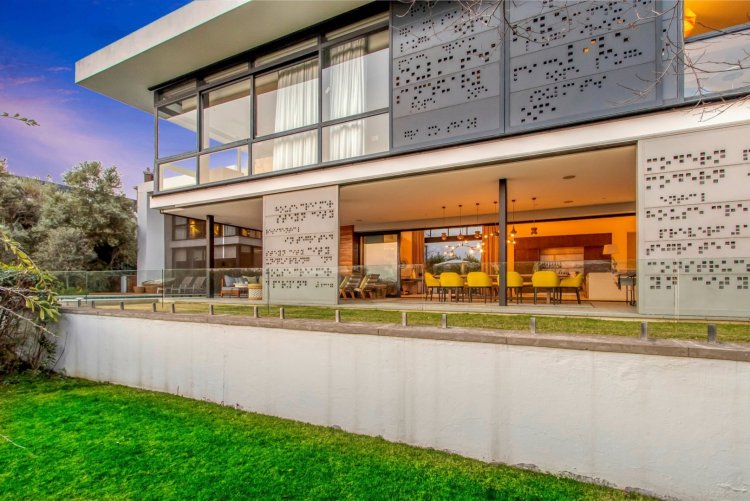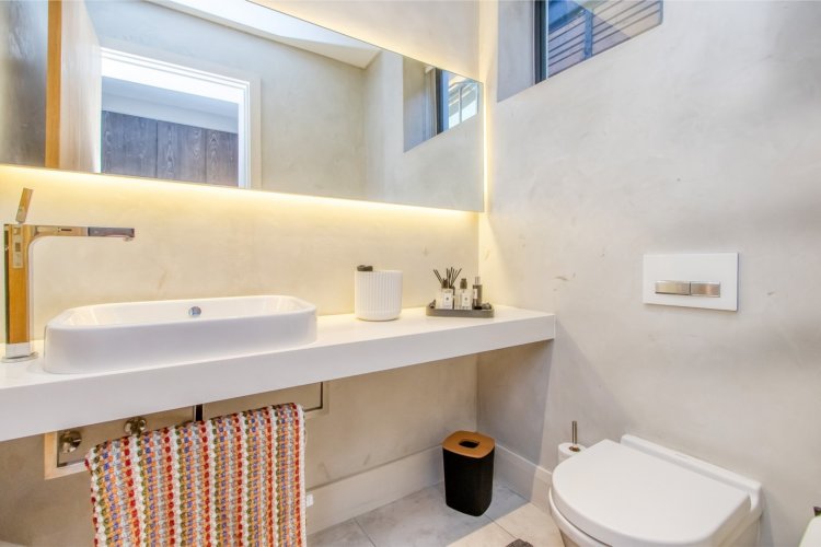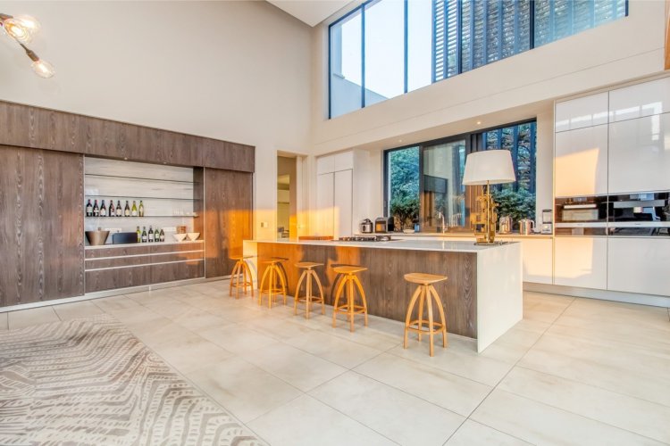 The state-of-the-art kitchen is a culinary enthusiast’s dream—featuring sleek Caesarstone countertops, high-gloss cabinetry, top-of-the-line integrated appliances, a central island with a gas hob, and a separate scullery—perfectly designed to elevate your hosting experience. Indoor and outdoor living merge beautifully, with an internal courtyard featuring a striking water feature, a heated mosaic-tiled pool, and a sun-drenched deck. A private guest suite with an en-suite bathroom and an additional guest cloakroom complete the ground floor. Upstairs, the master retreat is a sanctuary of calm, opening onto a private balcony that showcases sweeping 180-degree views. A designer walk-in dressing room and an indulgent, spa-style bathroom offer the ultimate escape. Two further en-suite bedrooms—each with walk-in wardrobes—provide luxurious accommodation for family and guests alike.