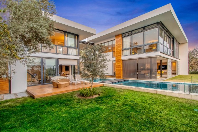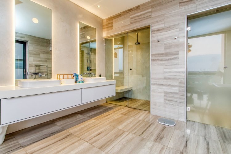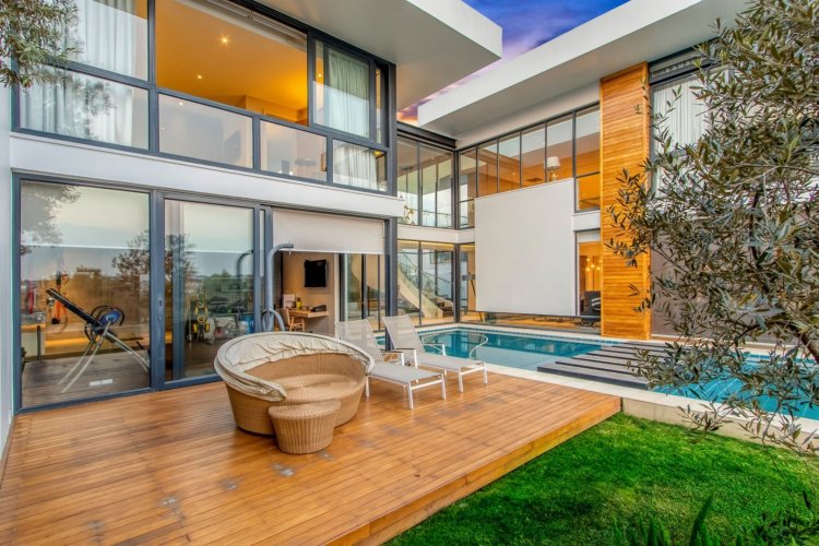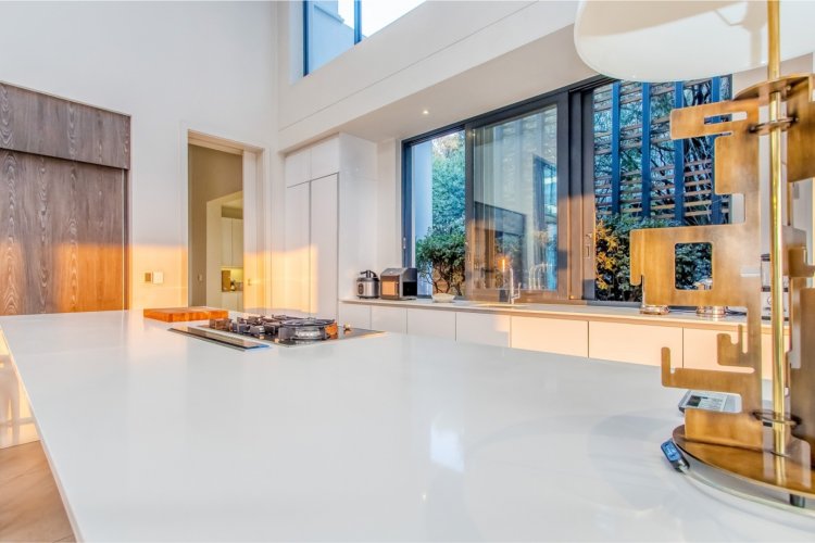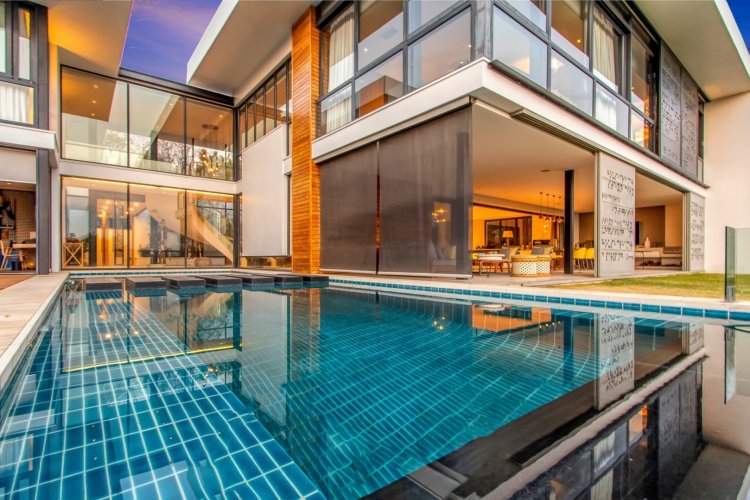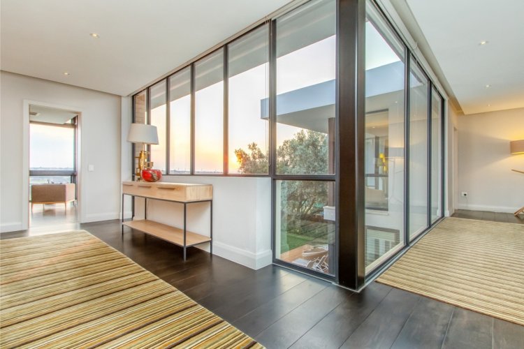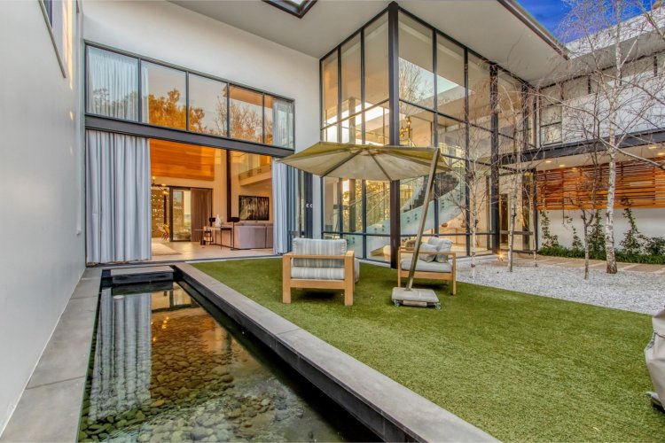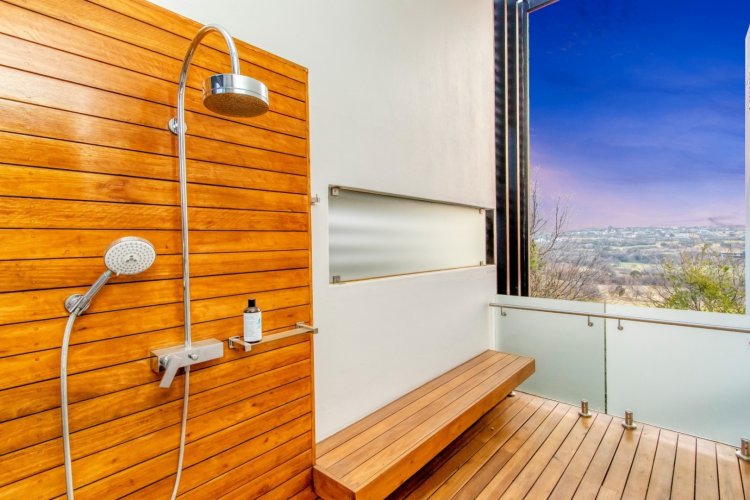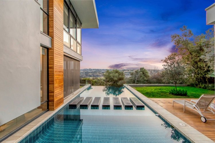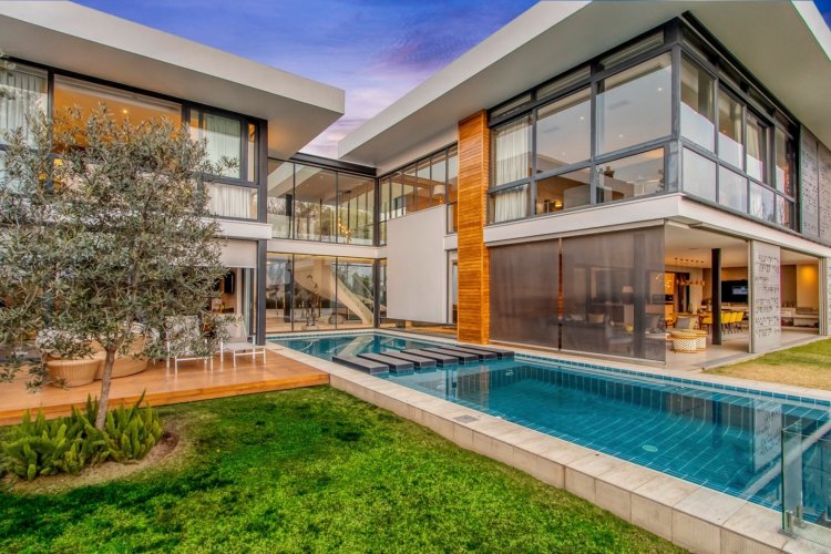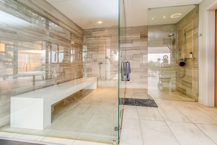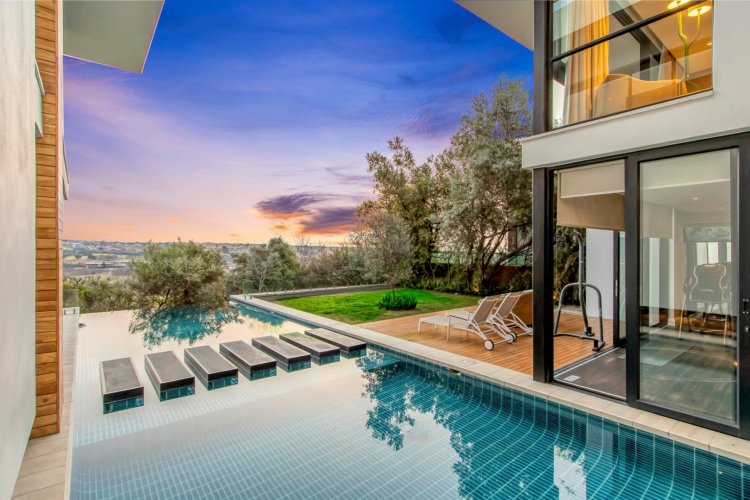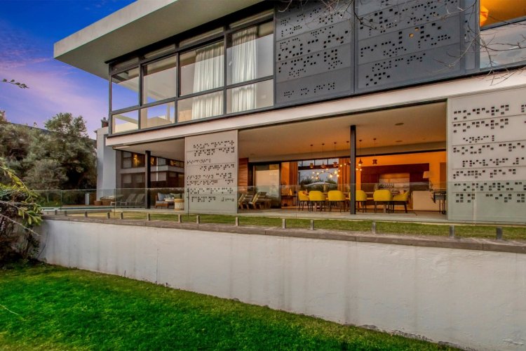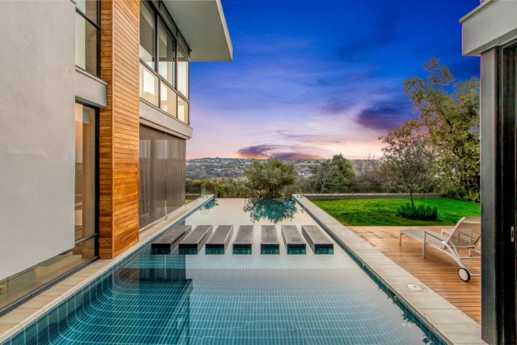 The state-of-the-art kitchen is a culinary enthusiast’s dream—featuring sleek Caesarstone countertops, high-gloss cabinetry, top-of-the-line integrated appliances, a central island with a gas hob, and a separate scullery—perfectly designed to elevate your hosting experience. Indoor and outdoor living merge beautifully, with an internal courtyard featuring a striking water feature, a heated mosaic-tiled pool, and a sun-drenched deck. A private guest suite with an en-suite bathroom and an additional guest cloakroom complete the ground floor. Upstairs, the master retreat is a sanctuary of calm, opening onto a private balcony that showcases sweeping 180-degree views. A designer walk-in dressing room and an indulgent, spa-style bathroom offer the ultimate escape. Two further en-suite bedrooms—each with walk-in wardrobes—provide luxurious accommodation for family and guests alike.