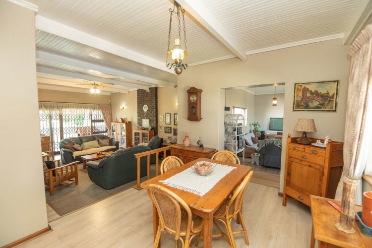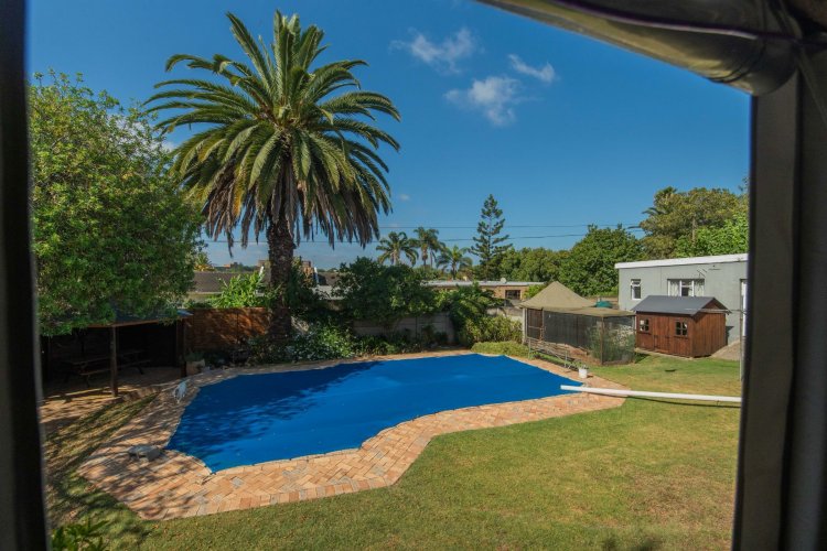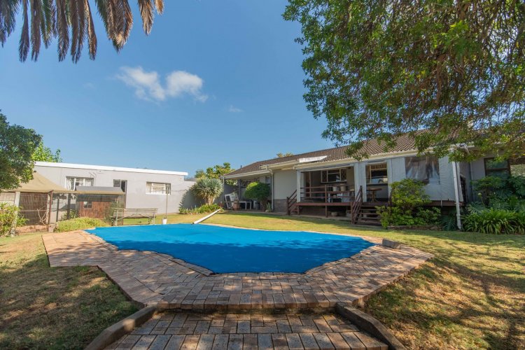 Deck, pool, boma, braai —repeat! That's the rhythm of life in this beautiful home, which nestles in a private walled garden at a prime Kariega address. The entertainment area is the star of the show, with sliding doors opening onto spaces that blur the line between indoors and outdoors. Whether you're rolling up the canvas on summery days and nights, or gathering around the firepit, this property makes entertaining fun and effortless. Open-plan and designed for connection, the living spaces include a carpeted formal lounge with a fireplace and sliding doors onto the undercover stoep, a dining area, and a tiled TV room that spills out onto the wooden deck. Overlooking the sparkling swimming pool, it's just steps away from the boma with its pull-up blinds, and the firepit for every kind of gathering in every kind of weather. At the heart of the home is an immaculate, tiled kitchen with a chatty breakfast bar, masses of built-in cupboards, hob, extractor fan and oven, and an adjacent scullery with back door access to a wooden deck. And when it's time to turn in, there's a sumptuous main bedroom with a stunning en suite bathroom, three more bedrooms, a family bathroom, and a separate toilet. Plus the property boasts a double garage, a double carport, brick-paved driveway parking for guests and an outside laundry with a toilet. Fully enclosed with a remote front gate, alarm system, burglar bars and security gates on all exterior doors, this oasis comes with excellent proximity to Muir College Boys' High School, Riebeeck College Girls' High and other educational facilities. If this sounds like the lifestyle home you've been dreaming of, please contact me to set up an appointment to view it.