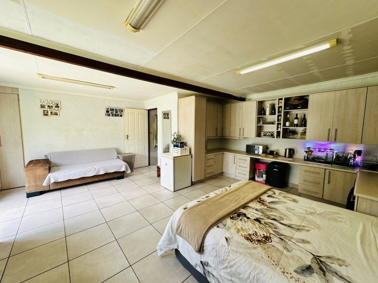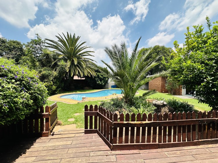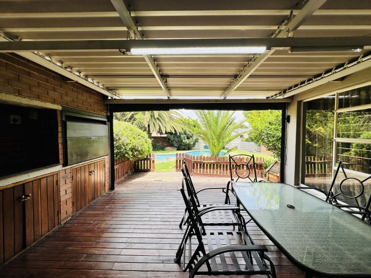 The entertainment area comprises of a built-in braai with louvre doors and a basin - Ideal for hosting family and friends. The outdoor area includes: • Sparkling swimming pool • Well-maintained, landscaped garden • Additional accommodation and extras: • Spacious open-plan flatlet with built-in cupboards and bathroom • Staff quarters with toilet and shower (can also be used as a storeroom) • Parking: • Double automated garages with built-in cupboards • Secure parking for two to three additional vehicles