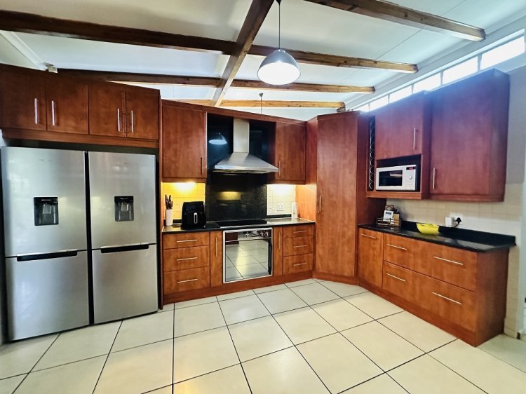The main bedroom is spacious located down the passage with walk-through cupboards for him and her, a modern vanity area and built-in drawers and shelving. The en-suite full bathroom has contemporary finishes. There are 3 additional well-proportioned bedrooms with built-in cupboards. A second stylish family bathroom services the additional bedrooms.