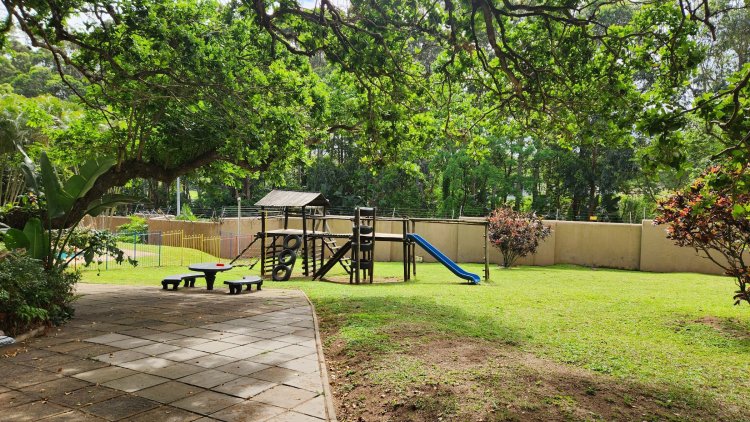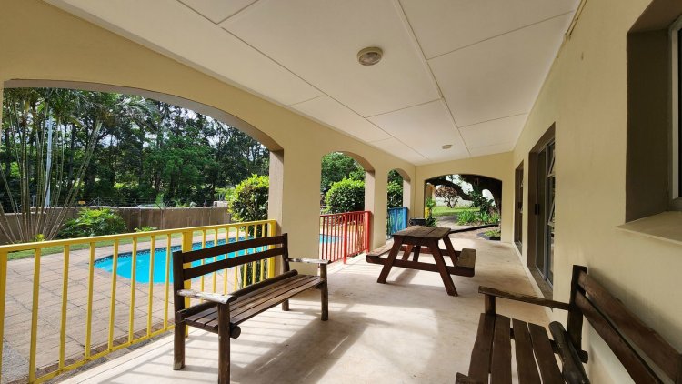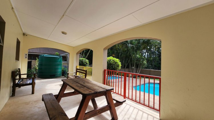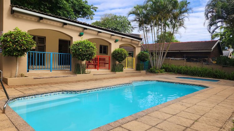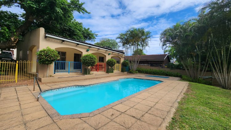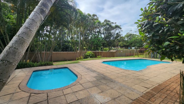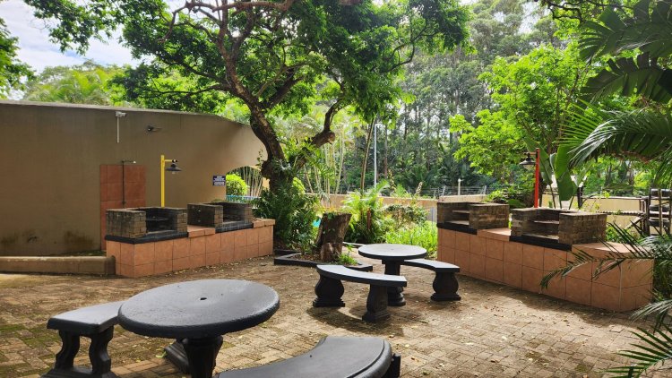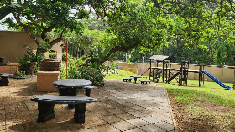The complex offers a host of amenities including a swimming pool and kiddies pool, braai areas, and a kids' jungle gym, making it ideal for families and entertainers alike.