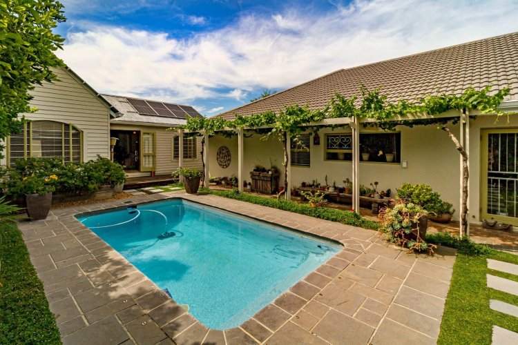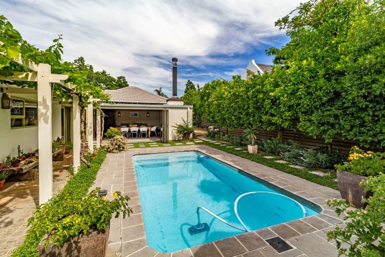 Exclusive joint mandate. Discover a warm and inviting home in the heart of Paradyskloof, offering a relaxed, holiday-like atmosphere with its plain, natural finishes and effortless charm. The main house features screed flooring, spacious open-plan living areas, and seamless flow to an undercover patio with built-in braai overlooking the private garden and swimming pool. The layout includes two bedrooms and two bathrooms, with ample opportunity to add a third or even fourth bedroom if desired. A second living area, currently used as an office, adds versatility, while the simple yet heartfelt kitchen anchors the home with an easy, uncomplicated lifestyle. A wonderful bonus is the two-bedroom cottage, complete with lounge, patio, bathroom and a kitchenette. Perfect for teenagers, extended family, guests, or rental income, it enjoys its own sense of independence while remaining connected to the main house through the beautiful garden setting. Additional features include a double garage, approved plans for a carport, secure parking for at least two vehicles, an inverter, and a charming vegetable-garden corner. Positioned near the Eden Forest Nature Reserve, the property offers superb access to hiking, jogging, and mountain-biking trails, and is a short walk from the renowned Dylan Lewis Sculpture Garden. Surrounded by award-winning Boland wine farms and with easy access to the R44, it's only 35 minutes from Cape Town International Airport. Contact the agent for a viewing.