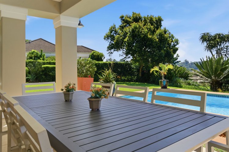 The lower level offers remarkable flexibility and can function as a fully self-contained flatlet, guest suite or entertainment wing, complete with bedroom, bathroom, lounge and kitchen, all opening directly onto the pool and flat garden. Additional features include two garages, a second access with double carports, an outside office, outside toilet and storeroom, and a beautifully positioned pool with surrounding verandah spaces ideal for relaxed outdoor living. Offering scale, privacy and multi-generational potential within one of the area’s most desirable estates, this is a home that balances elegance with practical design.