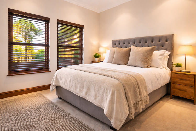 Set within a secure, lifestyle-driven gated estate offering tennis courts, communal swimming pools, a clubhouse, play park and kiddies’ putt-putt, this expansive north-facing residence captures sweeping views toward Kirtlington and delivers exceptional versatility. Designed for both family living and entertaining, the home offers generous open-plan spaces including a large solid wood kitchen with separate scullery and prep area, two eye-level ovens and gas hob, flowing into an expansive lounge with a wood-burning glass-enclosed fireplace. The living areas extend seamlessly to a top verandah with built-in barbeque and a dining room that opens onto a balcony, all enhanced by ducted air-conditioning upstairs. The bedroom wing includes a luxurious main suite with walk-in closet, full en suite and doors to the verandah, along with two additional bedrooms, a family bathroom, guest loo and ample linen storage.
