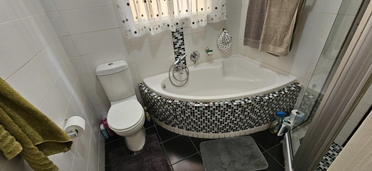 This very spacious unit boasts a big lounge, dining area and kitchen with modern finishes, ample wooden finished cupboards, a gas hob, breakfast area, granite tops, space for your washing machine and an eye-level oven. From the lounge you are led to the covered entertainment area with sliding doors leading to the spacious, private and well kept garden.
