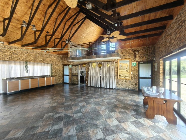 Accommodation and guest facilities are extensive and well developed. The fully furnished lodge includes a large entertainment area with kitchen, bathrooms, storage, and a sleeper-wood bar, supported by a 19m x 12m wooden deck and furniture, cutlery, and linen for up to 120 guests. Six well-appointed chalets accommodate up to 28 guests. The caravan park offers 10 ablution facilities and four sculleries, as well as separate laundry facilities with an external bathroom. Three boma areas cater for late-night entertainment, one of which includes a tuck shop/bar. A swimming pool and children’s play park further enhance the guest experience.