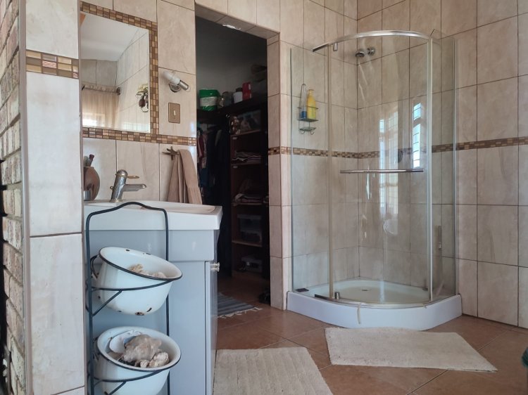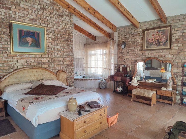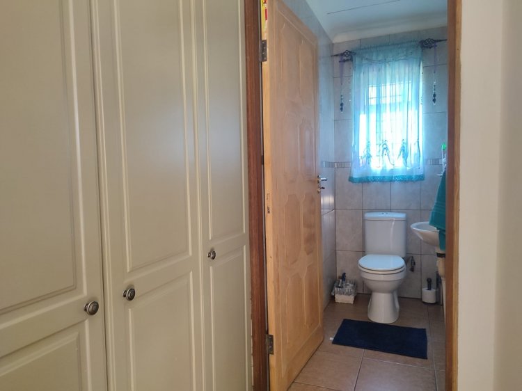 The spacious face-brick main residence (tile roof, tiled floors throughout) boasts: • An inviting open-plan lounge, kitchen, and dining area • 3 large, sun-filled bedrooms with plenty of built-in cupboards • 2 full bathrooms (main ensuite) plus a guest toilet • Entrance hall, study, laundry, pantry/scullery, cold storage room with aircon, and additional storage rooms • 2 covered parking spaces with Harvey tile roofing