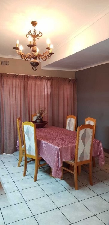 This very beautiful and neat 5-bedroom home is perfect for a large family and offers endless possibilities. The house welcomes you with an open-plan, spacious lounge, dining area, and modern kitchen, creating a warm and inviting living space. On the ground floor, you will find three well-sized bedrooms and two bathrooms, including a main bedroom with an en-suite bathroom. The upper level features two additional bedrooms and a versatile loft, ideal for a home office, study, or extra living area. Outside, the property boasts a beautiful entertainment area with a lapa and built-in braai, perfect for hosting family and friends. Additional features include a storeroom, borehole with JoJo tank, double lock-up garages, carports, and automated gates. The neat, lush, and manageable garden includes fruit trees, adding charm and tranquility to the home. Centrally located and close to amenities, this rare find offers comfort, space, and convenience. Don’t miss out—contact us today to arrange a viewing.
