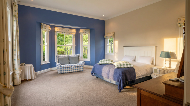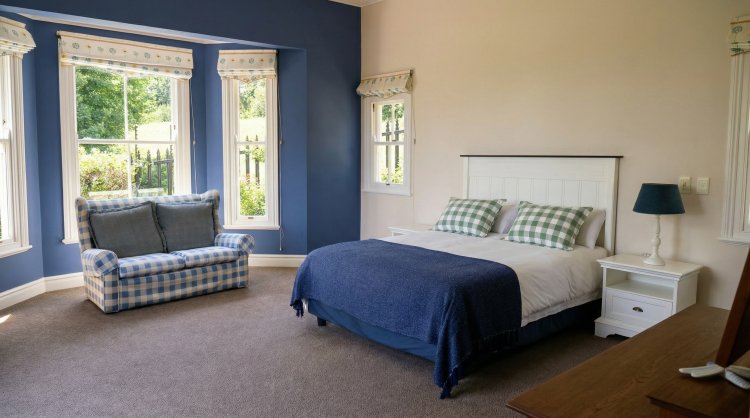 From the moment you arrive, the home impresses with its classic pitched roofs, wraparound verandas, and manicured gardens, all framed by rolling green hills and mature trees. The elevated position enhances privacy while maximising the outlook across the landscaped grounds and countryside beyond.