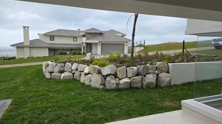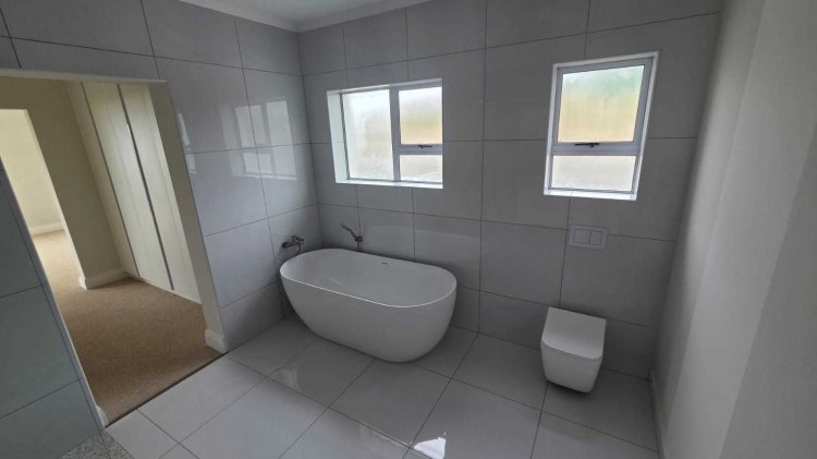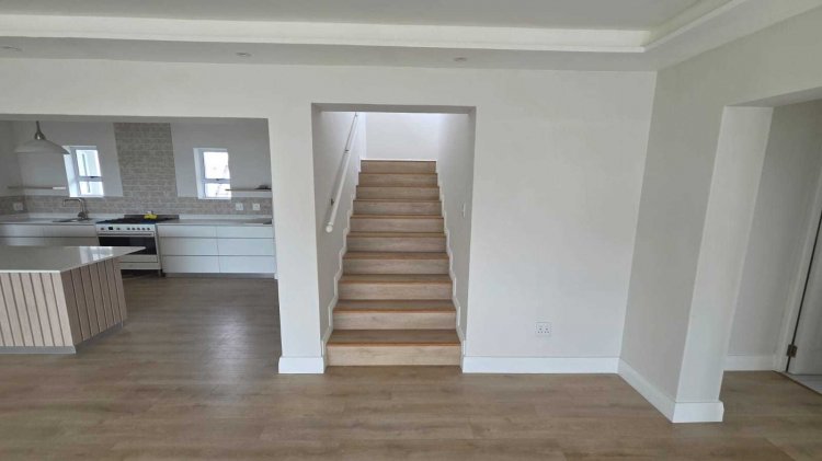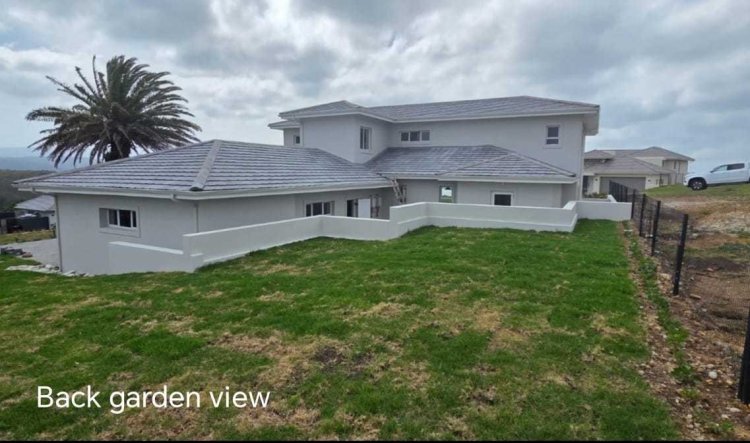 • Open-plan living room & kitchen with centre island – ideal for family meals or casual gatherings • SMEG gas hob and electric oven for modern cooking convenience • Separate scullery to keep appliances neatly tucked away • Walk-in pantry for added storage and ease • 5 spacious bedrooms – all en-suite, ensuring privacy and comfort for family and guests • Guest loo for convenience • Covered stoep with built-in braai on the ground level – perfect for year-round entertaining • Upstairs entertainment area with space for a pool table, lounge suite, and pub, opening onto an expansive balcony with panoramic vistas • Interiors in soft natural shades, offering a timeless canvas for your personal style • 3 garages on remote with paved driveway