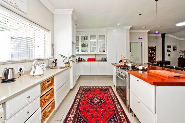 Renovated, eat-in kitchen with a gas stove, receptions with wood burning fire place, leading to a large covered patio with aluminum stacking doors creating a great indoor –outdoor feel overlooking the rock pool and established garden. An adjacent but private part of the house is perfect as a work-from -home office or practice, offering an en-suite bedroom, kitchen plus dining room and lounge, also leading to the patio/pool and to a back garden.