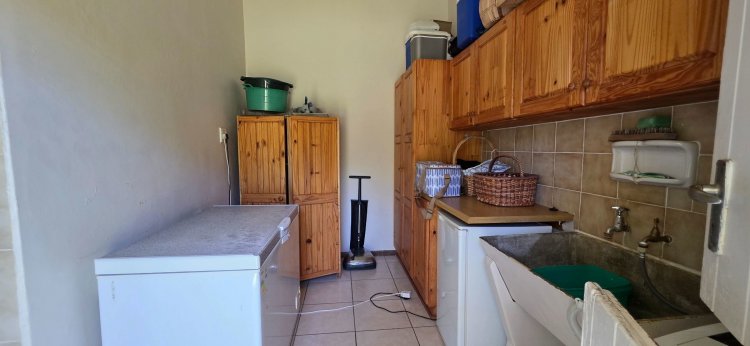 Five spacious bedrooms (4 bedrooms with built-in cupboards) Two bathrooms (Family bathroom with a shower, toilet and basin with a separate toilet; En-suite bathroom with a bath, toilet and basin) A dedicated study, ideal for working from home or managing family life Generous open-plan lounge and dining areas with a sliding door opening to the covered braai area and swimming pool that flows seamlessly for everyday living and entertaining TV Room or play area for kiddies. A spacious kitchen with built-in cupboards, walk-in pantry and a separate scullery for added convenience
