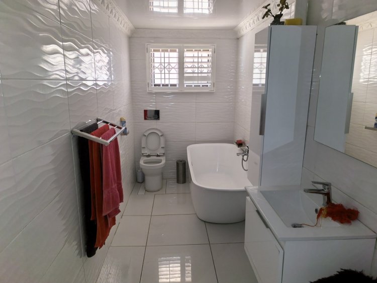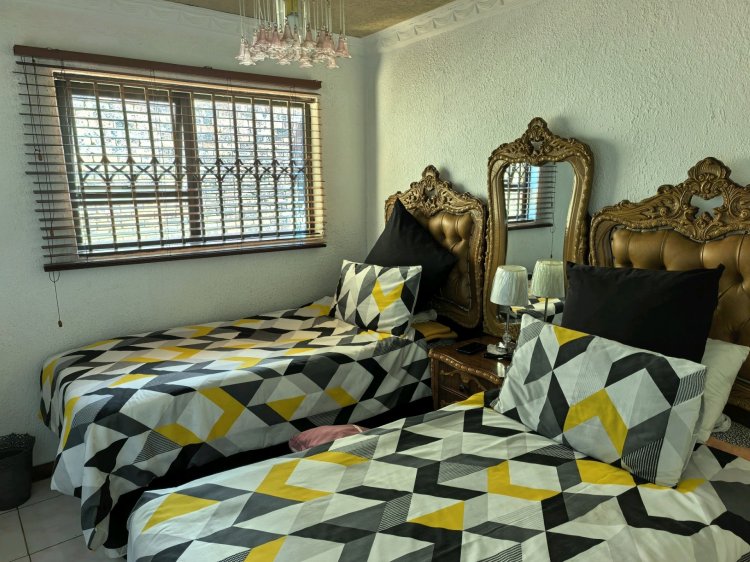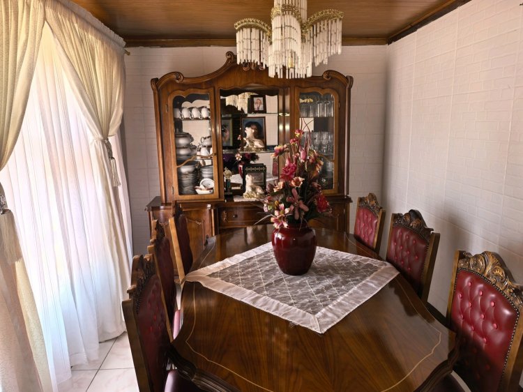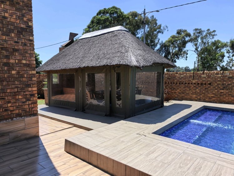 Well-maintained property for the larger family. This must be the neatest property on the market situated in a very quiet area close to all amenities. * Open plan lounge and dining room * Open plan TV room * Study with built-in cupboards * Fitted kitchen with a double eye level oven, electric hob, extractor fan, breakfast nook, loose gas stove, scullery and granite tops * Inside and outside laundry * Spacious master bedroom with a dressing room and mirror door BIC as well as an en-suite bathroom offering a toilet, basin, corner bath and a shower * Bedroom 2 is tiled and has mirror door BIC * Bedroom 3 is tiled and has BIC