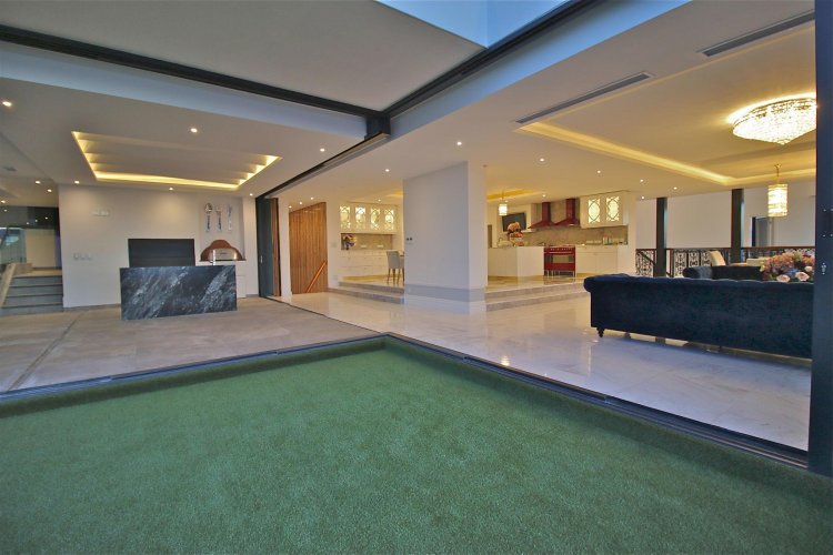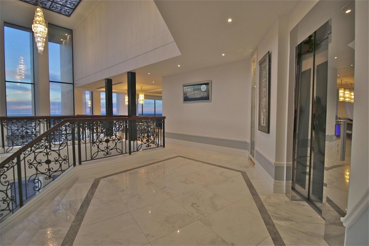 This residence boasts not only extravagance but also practicality, with a lift ensuring ease of access between the floors. The garage, with room for an astounding 12 cars, caters to the needs of car enthusiasts and collectors alike.