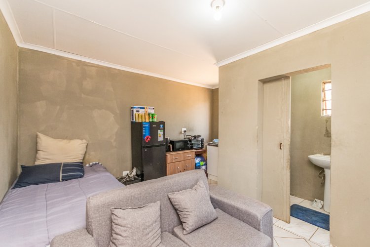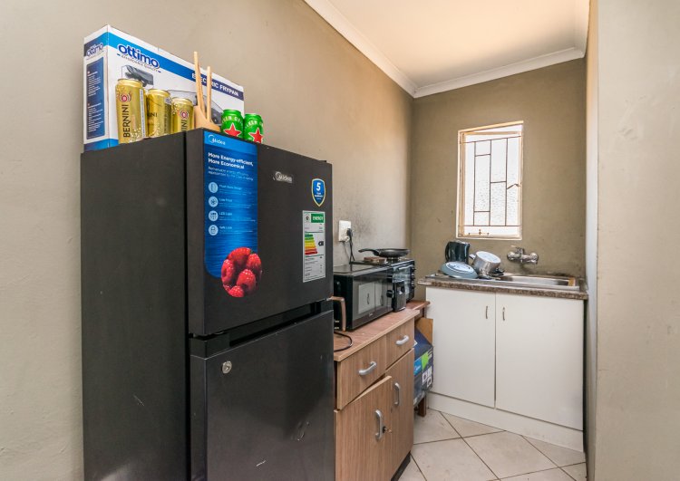 Situated in the sought-after Extension 5 in Cosmo City, this property has limitless possibilities. It boasts six self-contained units, each with a large room, a kitchenette with a single sink, and a bathroom with a shower. The floors have neat tiles.