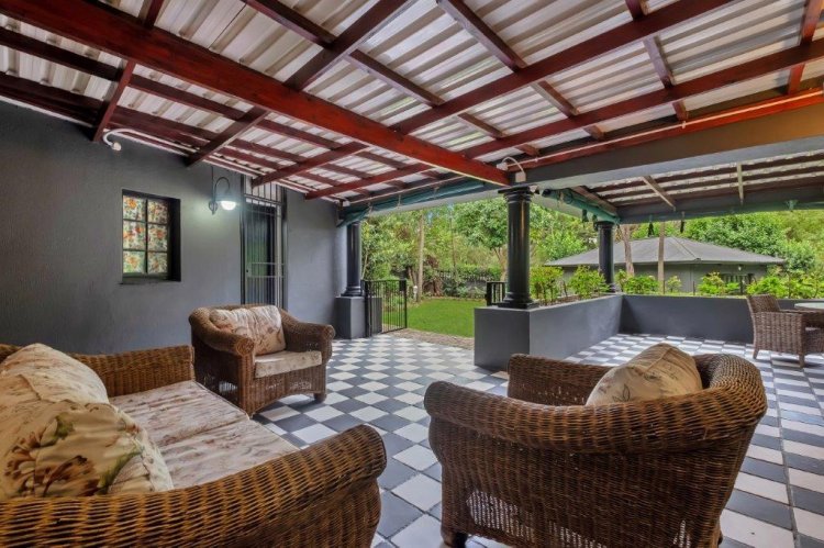 The seamless integration from the foyer to the formal lounge, expansive dining room, and well-laid out kitchen (with separate scullery) leading to a spectacular L-shaped covered patio overlooking a picture book setting of lawn, garden and trees-ideal for relaxed family living and entertaining. The versatile family room, ideal as a guest suite or teenagers’ retreat, opens onto an elevated wooden deck with views over the garden and swimming pool. A conveniently positioned bathroom services both guests and family.