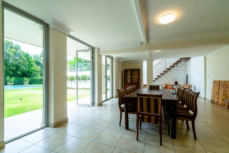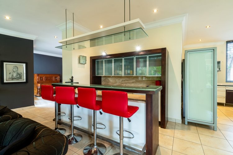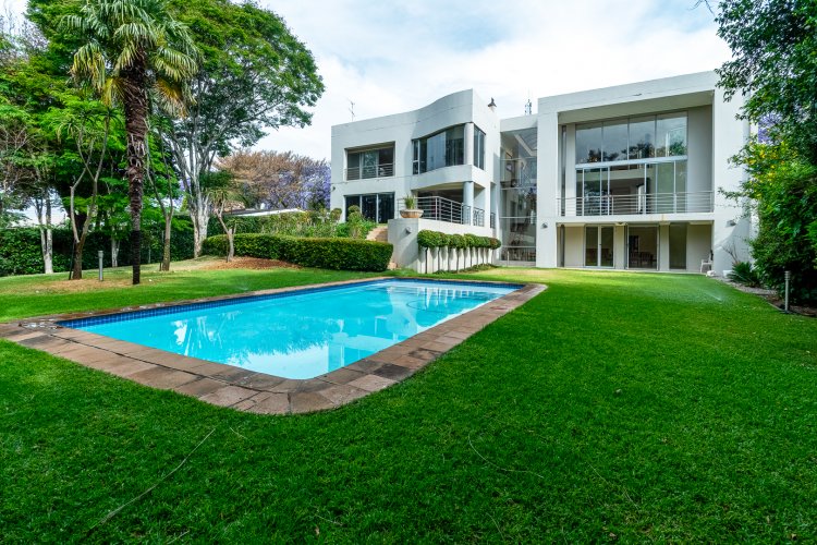 An exemplary fusion of glass, stainless steel & state of the art finishes, it is the perfect combination of sleek, modern, uncluttered, yet quietly sophisticated, design. The house reflects expertise & excellence through-out with three en-suite bedrooms upstairs, a large guest suite downstairs & two well-appointed flats for extended family or guests, with bathrooms en-suite, a kitchenette & having their own private entrances. An illustrious design, distinguished by panaché, style & flair it is perfect for the sophisticated buyer. The lounge/pool room downstairs opens onto a magnificent landscaped garden with bowling green manicured lawns & a sun-drenched pool. To top it all ..... Panoramic views that extend forever over the tree canopy. Indeed, "A Home in a Class of its Own." Totally sustainable, the property features a generator, 2 x inverters with back-up batteries, 2 water storage tanks with a water filtration system. Top security features include CCTV cameras, beams, alarm & electric fencing.