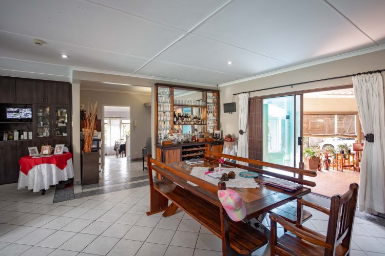 Features :- * Double garage and double carport, with parking for approximately 8 cars. * Thee are 2 pools, 1 used for leisure and the other for breeding koi. * There is a spacious level garden, perfect for the kids to play or for enjoying a moment to uwind and soak up the sun. * There is a front entertainment area which is ideal for enjoying outdoor meals or for entertaining family, friends or guests. * The main lounge opens onto the pool area via sliding doors. * 2 of the guest bedrooms have direct access to the pool and area. * There is an outside laundry and 2 servants quarters.