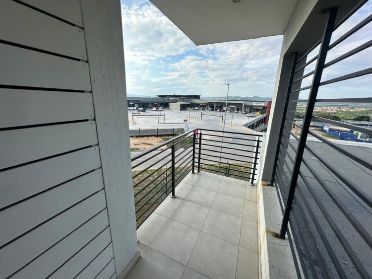 One bedroom apartment with bathroom - shower, basin and toilet Modern kitchen with open plan dining and lounge area. Built in braai on covered patio Private balcony Good security Amazing views of surrounding mountains and Matumi area.