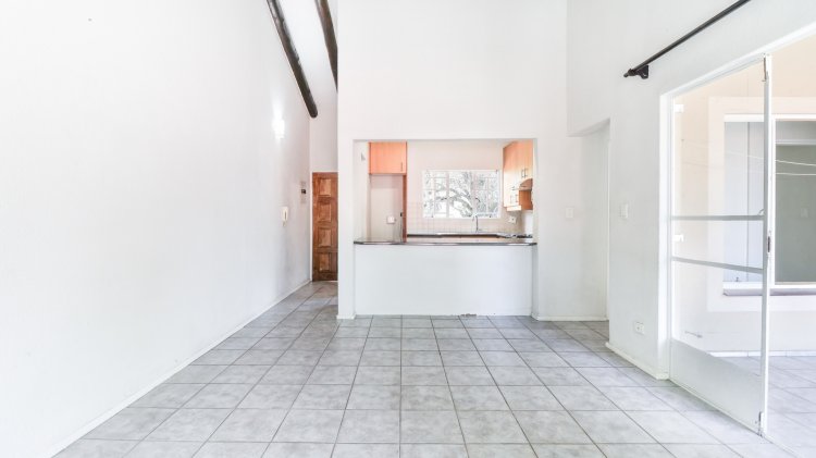Step into a light and inviting open-plan kitchen and double-volume, lounge area. The kitchen offers space for one under-counter appliance and a fridge, with an easy flow into the lounge. From here, double doors open onto a generous undercover patio — perfect for relaxed outdoor relaxation.