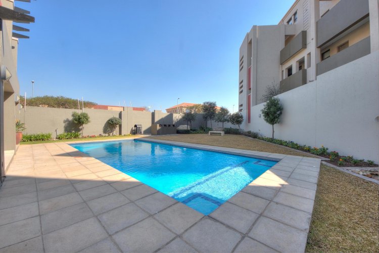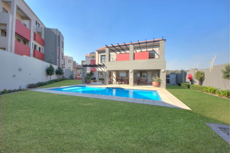 2 bed apartment in a popular complex, Modern kitchen with Caesar stone finishes, with lots of cupboard space, space for two appliances. Open plan lounge leading onto a sunny and bright open patio. Two well sized bedrooms and a full bath. Upstairs : Large loft, can be used as third bedroom or Lounge, opening onto a huge, semi covered balcony, ideal for entertaining. In a well-maintained complex, with excellent security, and sparkling swimming pool. Centrally situated ,walk to Sunninghill hospital, easy access to all major motorways, Mall of Africa, Sandton City and Fourways Mall.