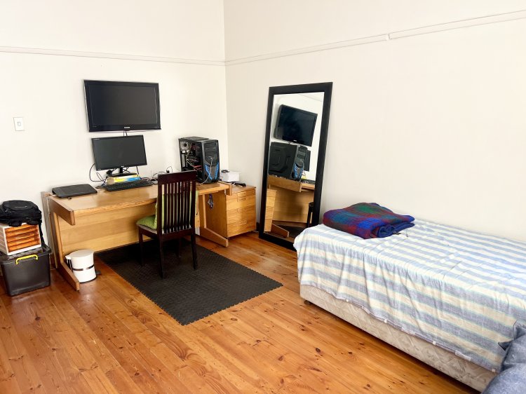 This property offers two generous bedrooms, including a main with an ensuite bathroom and built-in cupboard. A second bathroom with a separate toilet adds convenience for the household.