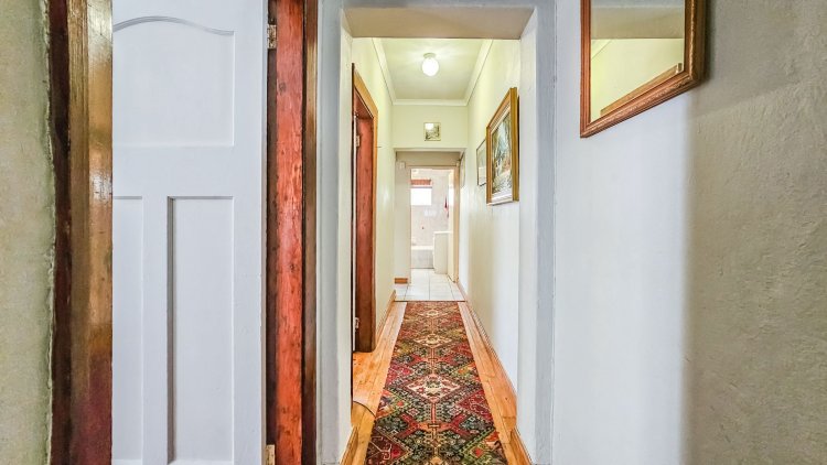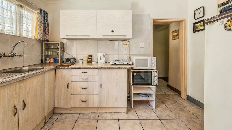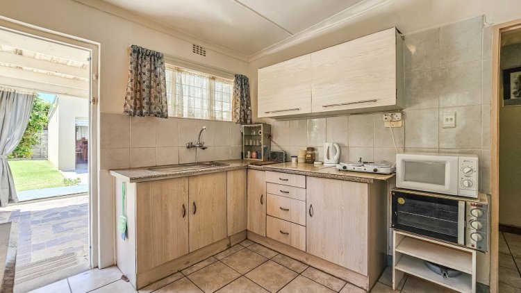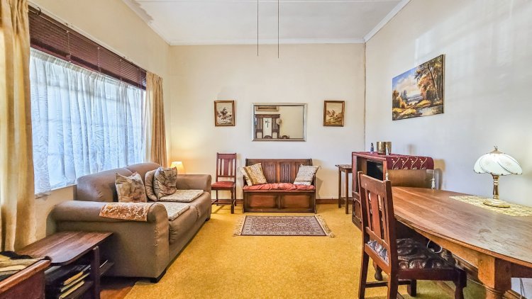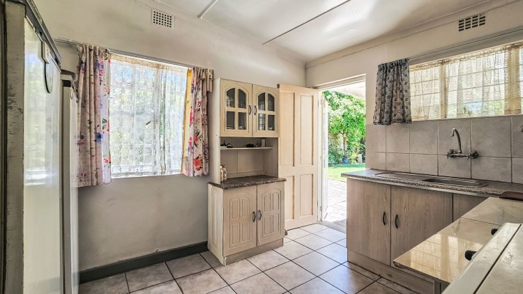 The front stoep—shaded by established greenery—welcomes you into the comfortable TV/family room and dining area. Down the passage, you will find two generously sized bedrooms and a full family bathroom.
