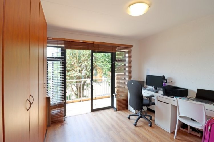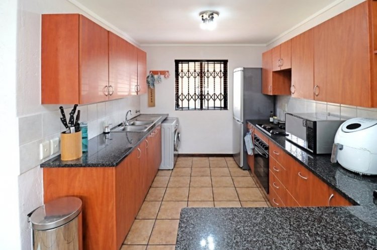 Superb upmarket townhouse with private garden! Situated in close proximity to Cresta shopping mall and all amenities. Convenience at its best. Tiled entrance hall, well appointed open plan kitchen with space for washing machine and fridge, granite breakfast counter and ample built-in cupboards. Open plan tiled, combined lounge and dining room area with sliders to under cover patio and garden. Upstairs 2 well-sized bedrooms, one with sliders opening to open balcony, laminate flooring and built-in cupboards. 2 Bathrooms & guest loo. Pool in complex, 1 under cover and 1 open parking bay, ample visitors parking. Burglar proofing and trellidoors. 24 Hour manned security and elec fence around the perimeter wall of the complex makes this the ideal lock-up and go! Pet friendly with prior written approval . Wi-Fi; Pred-paid electricity. Operational R2 505;