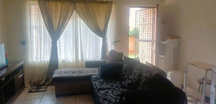 Features: - Ground floor unit - Open-plan kitchen with built-in oven - Spacious family room leading to outdoor area - Two bedrooms with carpets and built-in cupboards - One full bathroom - Private garden with irrigation - Alarm system - Double carport - Pet-friendly on approval from body corporate (no cats allowed) - Access control at the main gate of the complex - Communal swimming pool - Pre-paid electricity - Water billed by body corporate