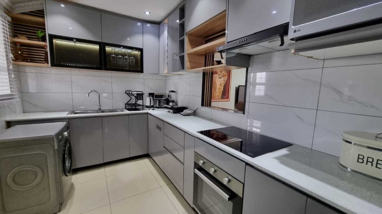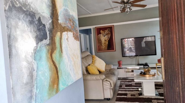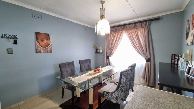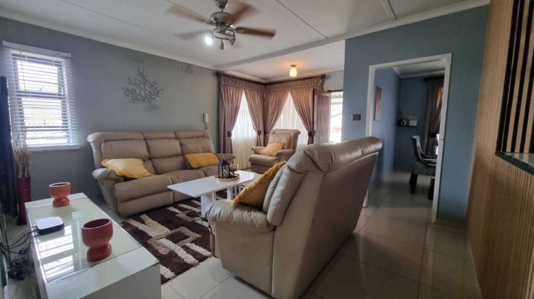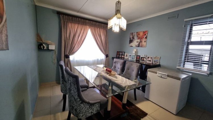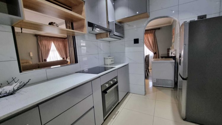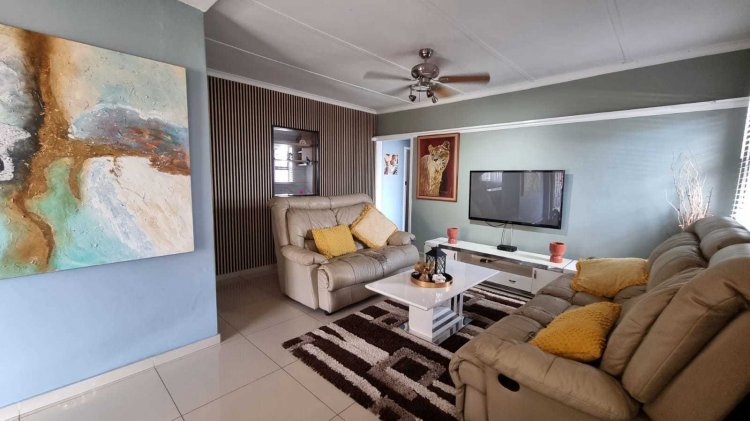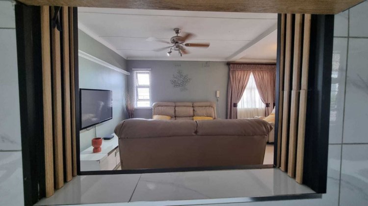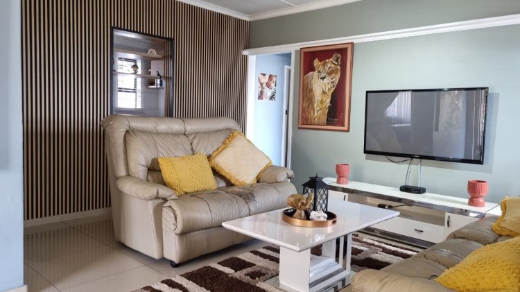 Inside, the beautifully tiled floors lead you through a space designed for living and loving. light flows through aluminium windows, filling every room with warmth. The lounge invites connection, its feature wall naturally guiding family and friends into the dining area, where laughter and conversation linger long after dinner is done.