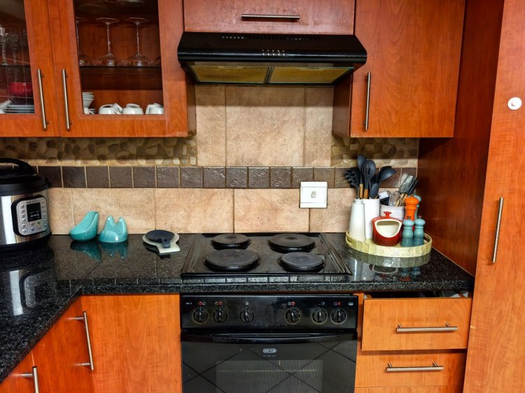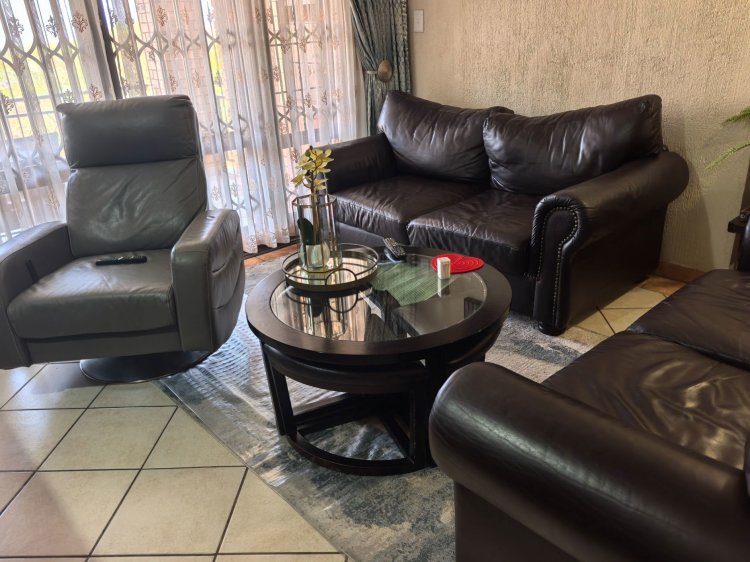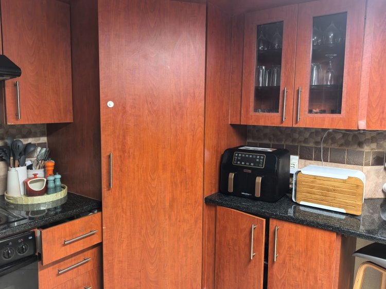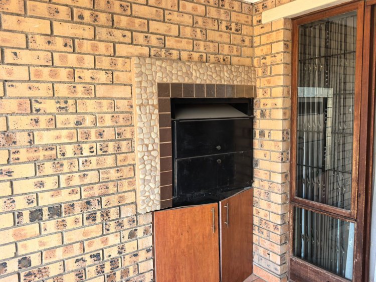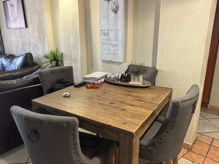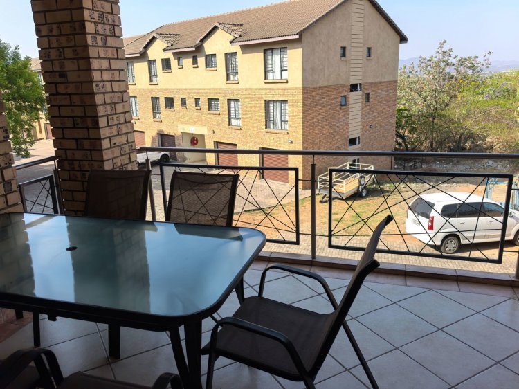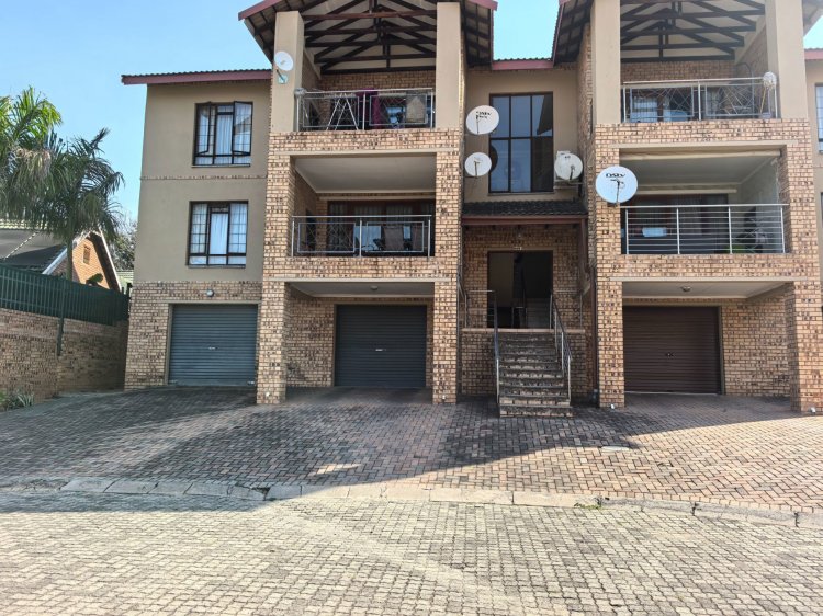 Three bedroom apartment with two bathrooms in quiet area of of a secure complex. Large open plan kitchen and living area. Balcony with braai. A tandem garage for Two cars. Low levies. come view
