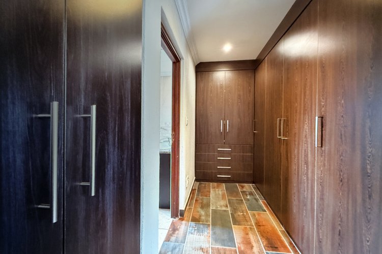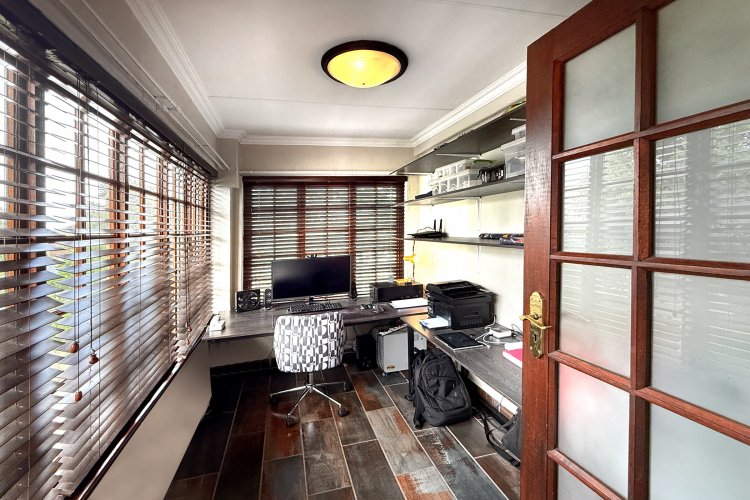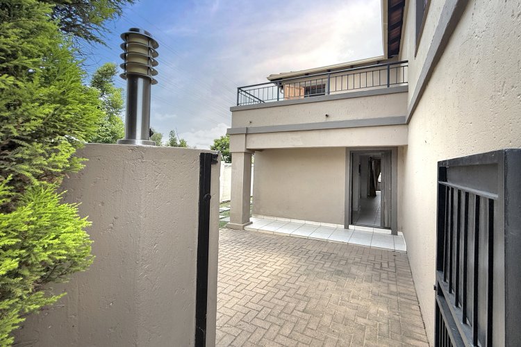 Upon entering, you are welcomed by generous living areas that can be arranged to suit your personal lifestyle and preferences. The modern, spacious kitchen features granite countertops, ample cupboard space, and room for multiple appliances, including a double-door fridge. The open-plan layout flows seamlessly into a large dining area, which leads out to a covered patio and a private, well-sized garden. The garden offers excellent potential to create a stunning entertainment area tailored to your family’s needs. A convenient guest toilet is also located downstairs.