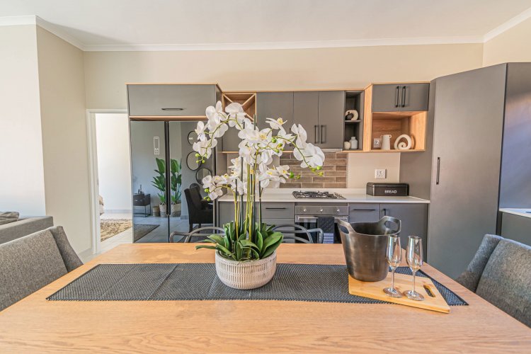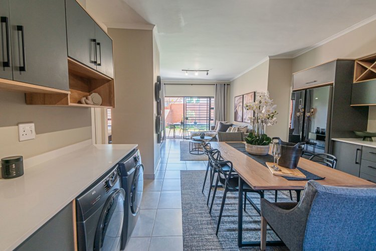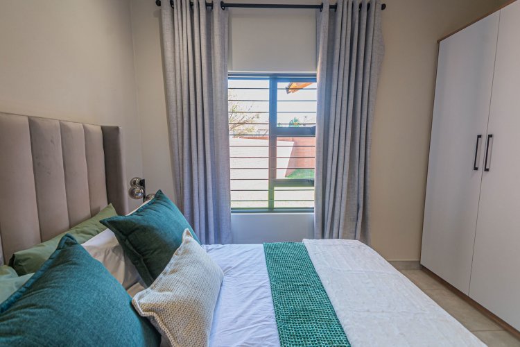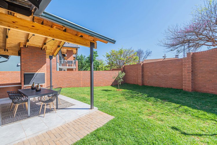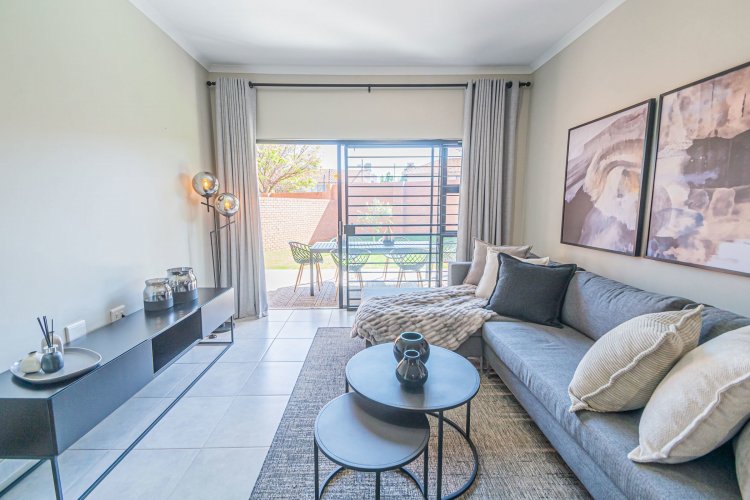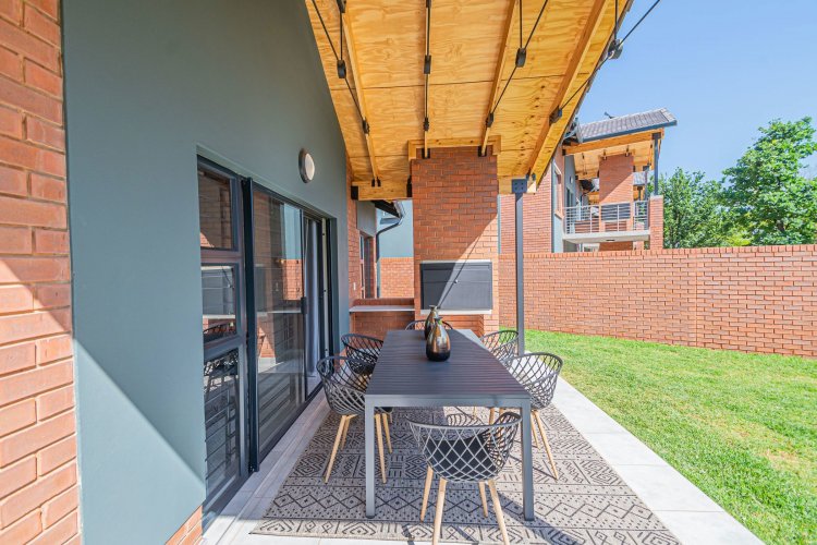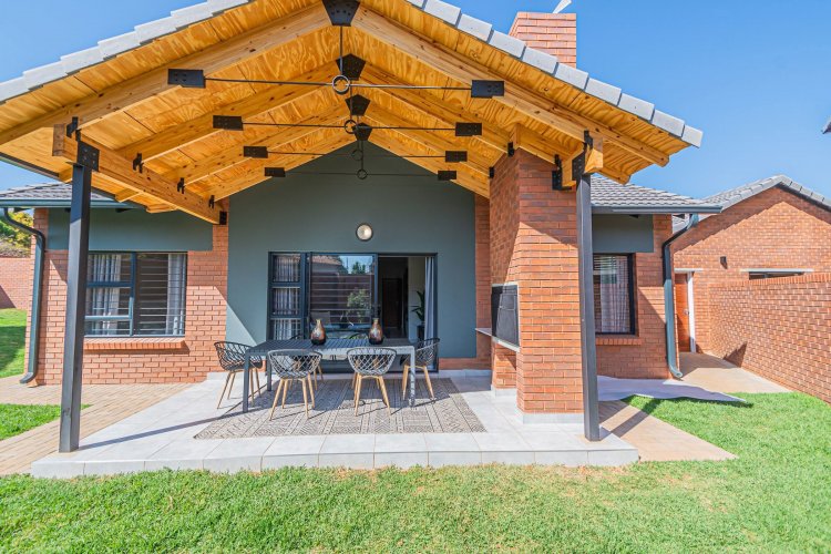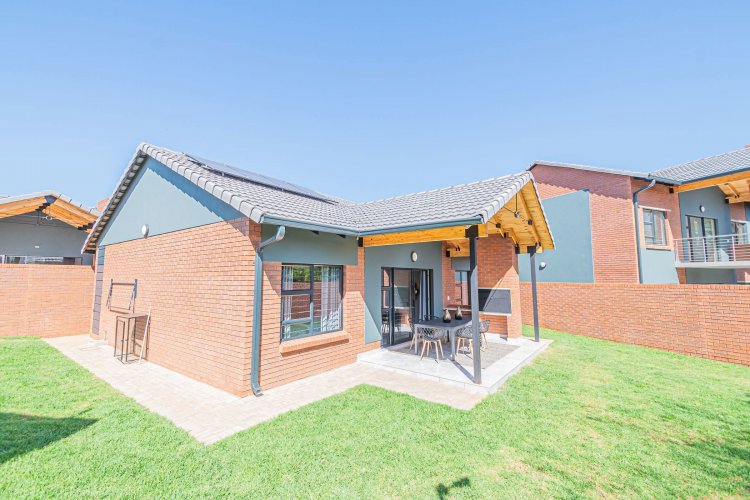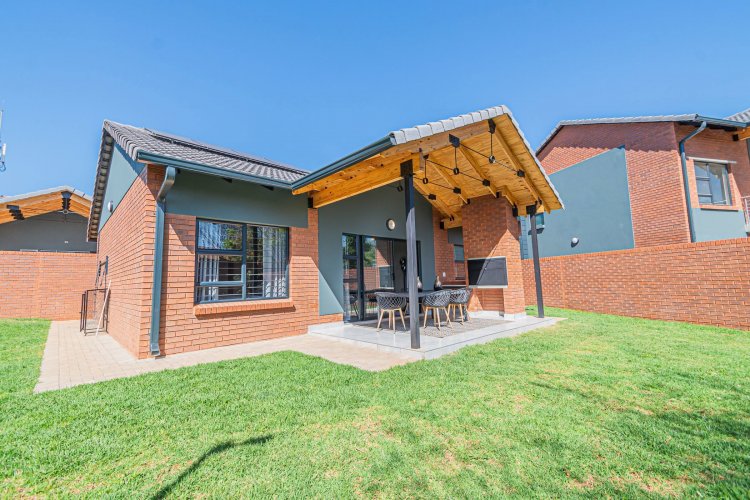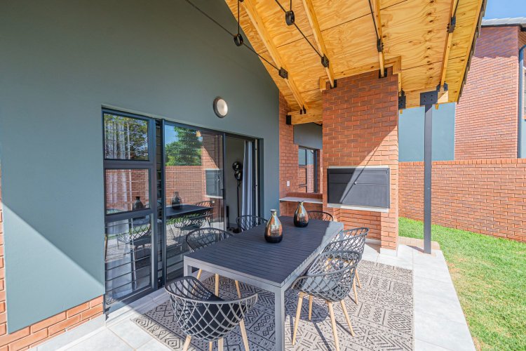 Additional info: Property Type: Townhouse / 3-Bedroom Unit Bedrooms: 3 Bathrooms: 2 (Main En-suite + Guest) Garages: 2 (Automated / Secure Parking) Living Areas: Open-plan Lounge and Dining Kitchen: Contemporary, Quartz Countertops, Gas Hob, Electric Oven Garden: Private Garden with Built-in Braai Veranda / Patio: Ground-floor units feature a veranda Security: 24-Hour CCTV Surveillance, Secure Access Control Energy Efficiency: Solar Backup System, Gas Geyser, Gas Stove with Electric Oven Condition: Brand New / Modern Finish