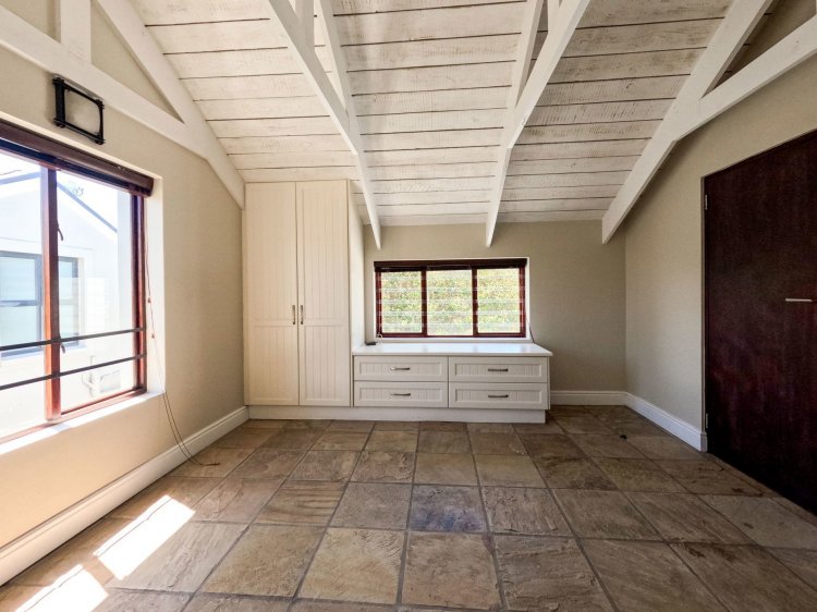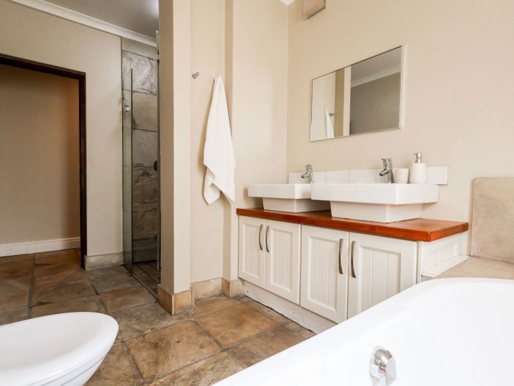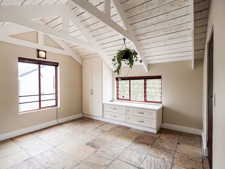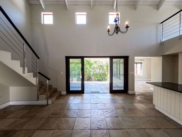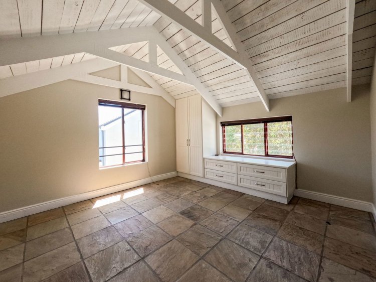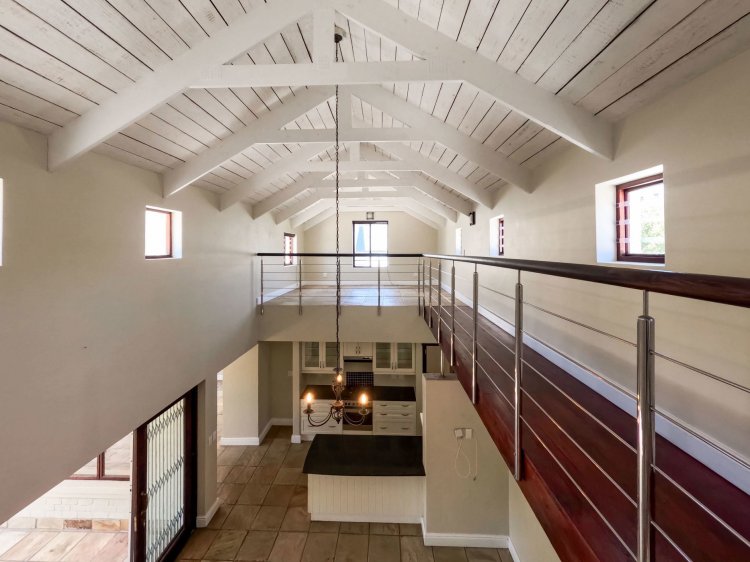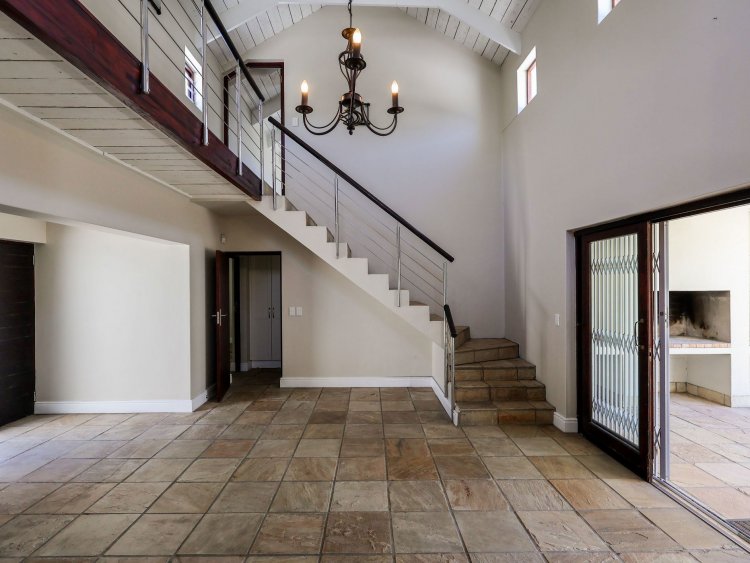 Exclusive Mandate – This much-loved family home exudes warmth and charm. We are proud to present this 3 bedroom, 3 bathroom (2 en-suite) home. Seamless flow between indoor and outdoor areas. Spacious double volume open plan living area with fireplace to keep you warm in the cooler evenings. Well-fitted kitchen with separate scullery. Undercover patio with built-in braai with spectacular mountain views. Established garden. Double automated garage with direct access and visitors parking.