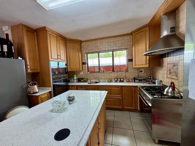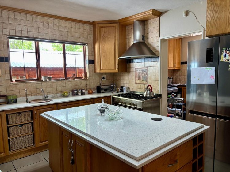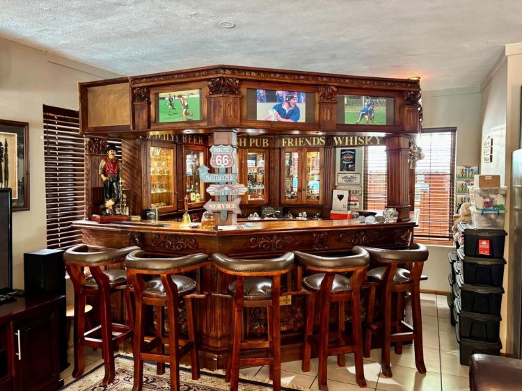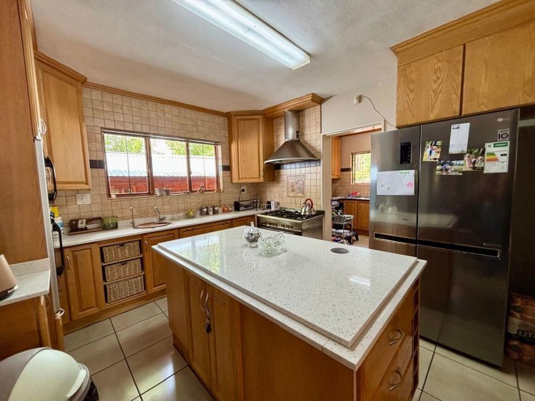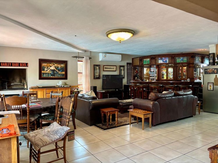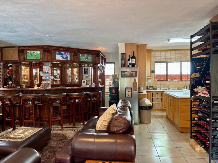 Sunlit open-plan spaces connect the kitchen, dining area, lounge, and impressive solid bar area—creating the perfect setting for entertaining or unwinding with family. The well-appointed kitchen flows beautifully into the living areas and features a private scullery for added convenience.