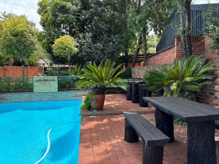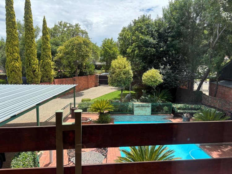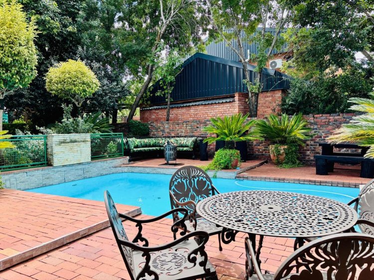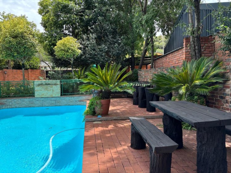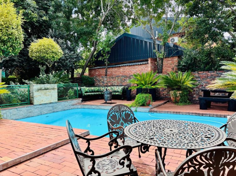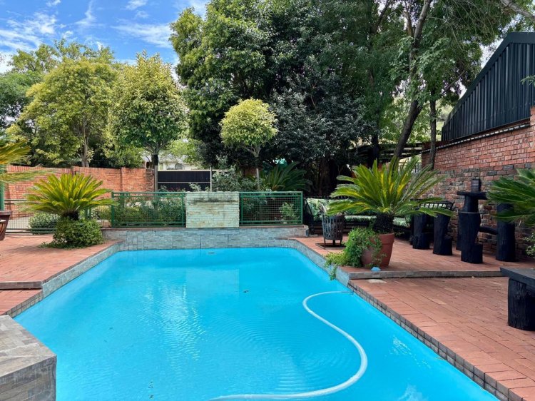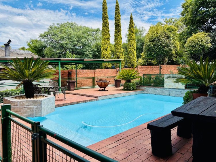 The lush, well-maintained garden frames a sparkling swimming pool—perfect for summer days. Additional features include: