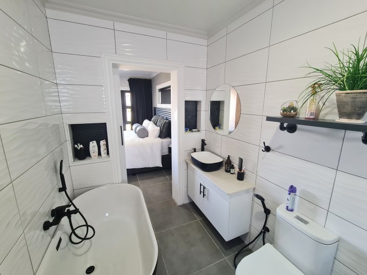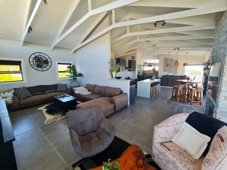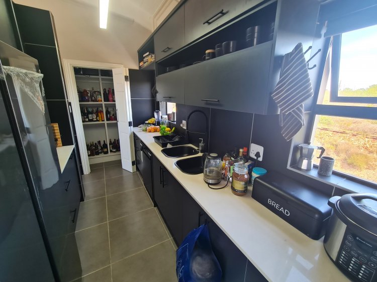 Additional features include 5x water tanks with pump fully integrated into the plumbing system. An 8 kVA inverter with batteries and 12x solar panels. Security cameras linked to mobile devices. Secure, access-controlled estate.
