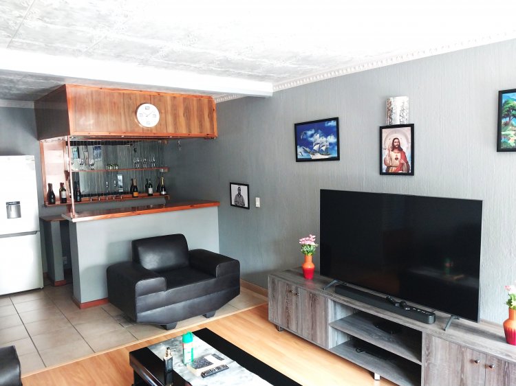 This property boasts outdoor entertainment space and ample parking space especially for the car fanatic - Enter this lovely home through the living areas that are designed for family gatherings and entertaining, with a lounge complete with a built-in bar flowing into a separate small dining room. The galley-style kitchen is fitted with a gas oven/stove unit and ample cupboard space making it a practical and efficient space.
